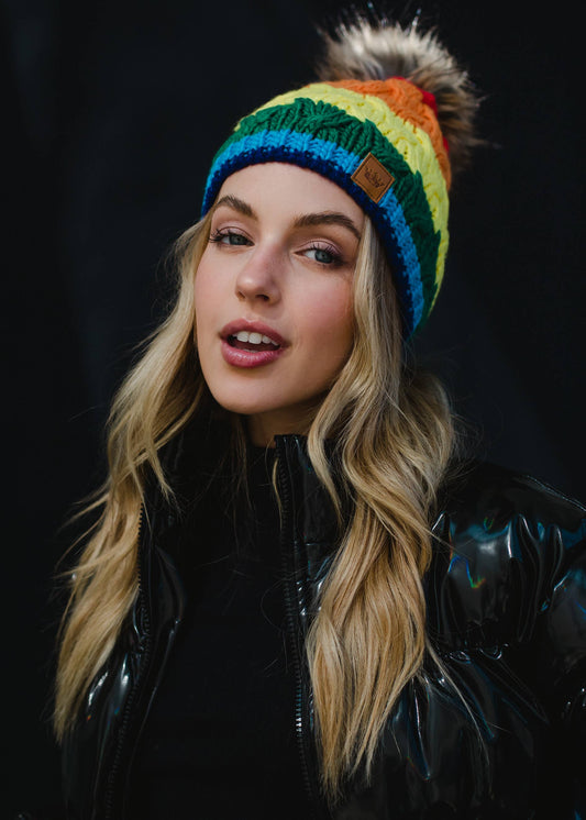 Classic Rainbow Stripe Pom Hat