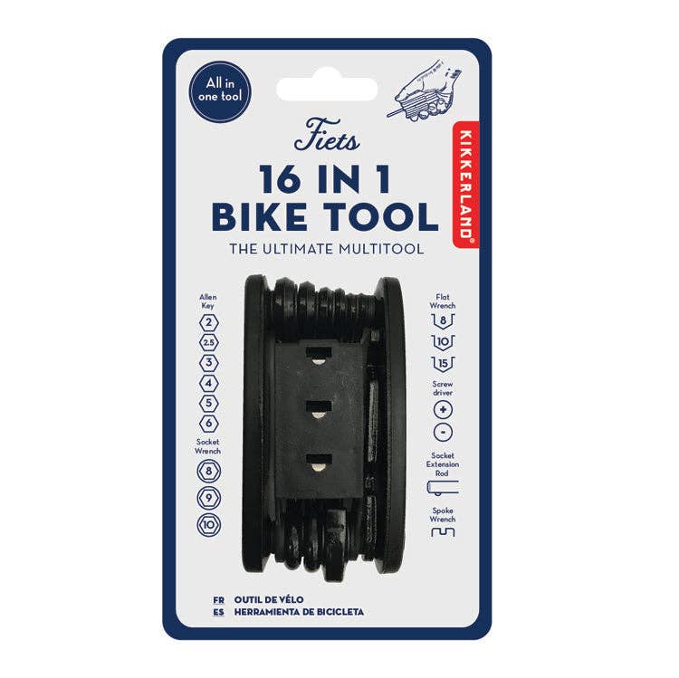 Stash this compact tool in any backpack or saddle bag to always be prepared for on-the-go bicycle repair! 16 different uses include: 2mm allen key, 2.5mm allen key, 3mm allen key, 4mm allen key, 5mm allen key, 6mm allen key, square socket extension rod, 8mm hex, 9mm hex, 10mm hex, Phillips head screwdriver, flathead screwdriver, 8mm open end wrench,10mm open end wrench, 15mm open end wrench, 14GE spoke wrench.; Product Dimension: 3.50" x 1" x 2"; Packaging Dimension: 3.75" x 7"; Material: PP, beechwood, nickel plated steel