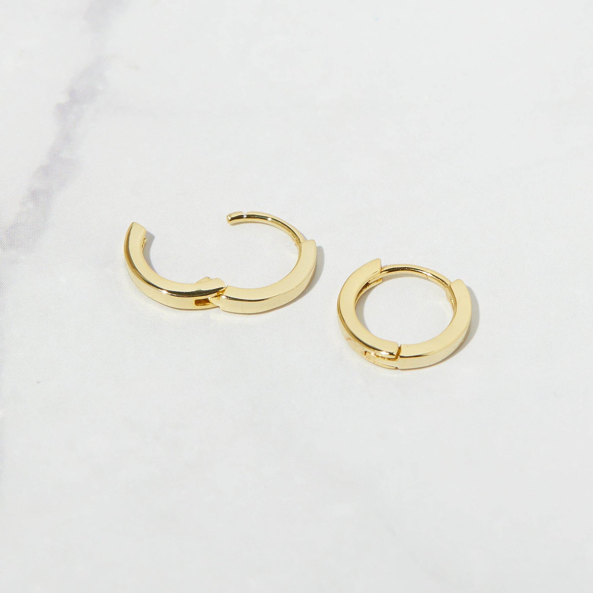 These minimalist hoop earrings are great and versatile. They pair nicely with other earrings, but also look chic on their own! * Made of 925 Sterling Silver * 14k Gold plated * We use a THICK plating for a piece that will be with you for years to come! * Inner Diameter: 9mm * Thickness: 1.5mm * Sold as a pair * Nickel-free & Hypoallergenic