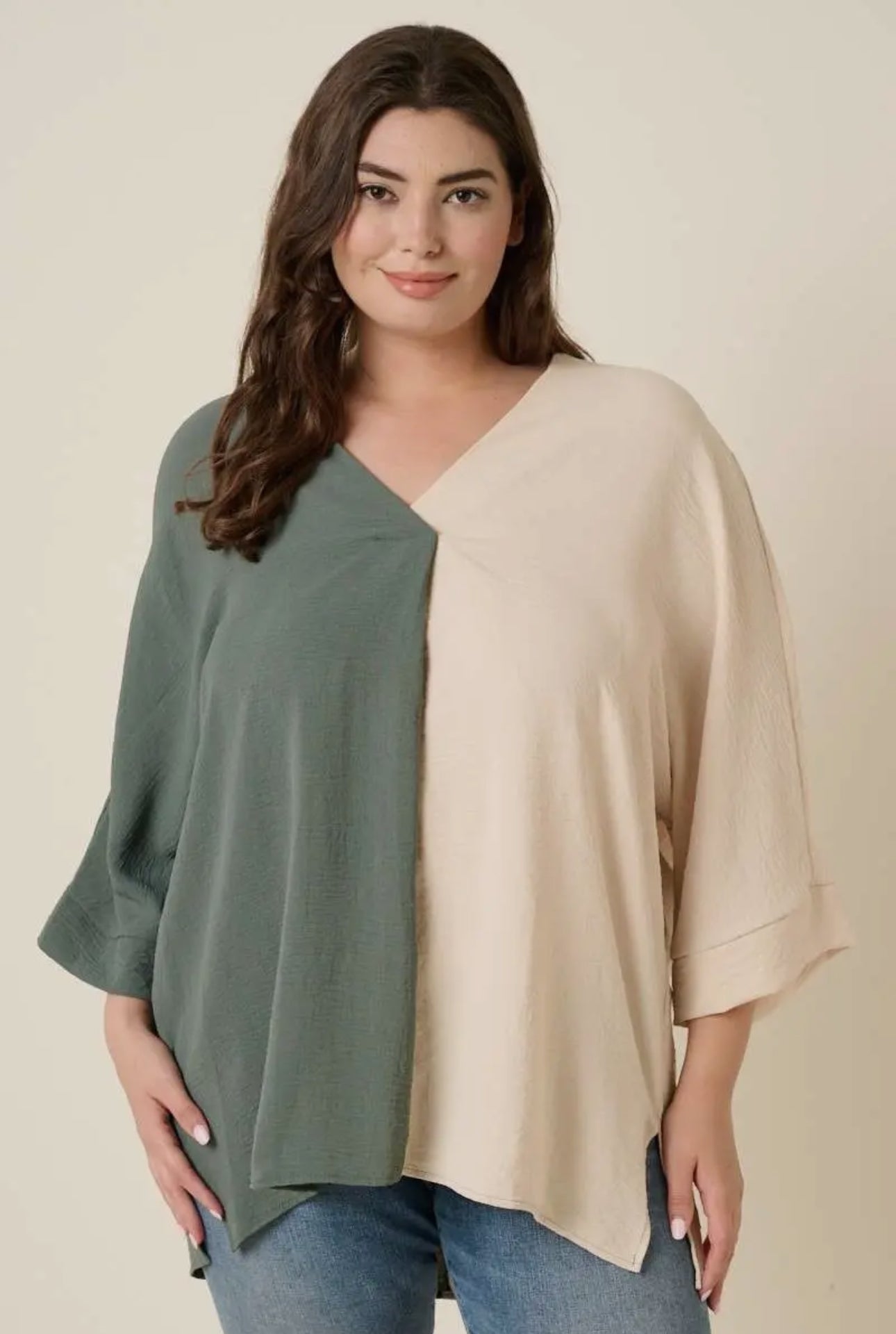 Airflow Color Block Dolman Sleeve Woven Top Plus Size