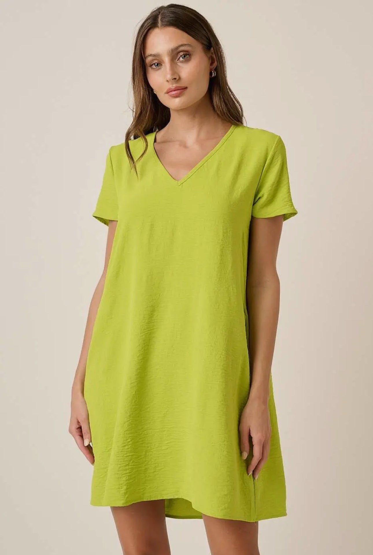 Detail : v-neck, short sleeve, side pocket, straight hemline