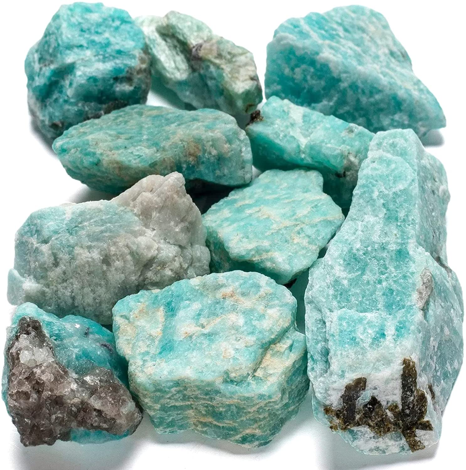 Rough amazonite is a formation of feldspar. Its color ranges from pale to bright aqua.