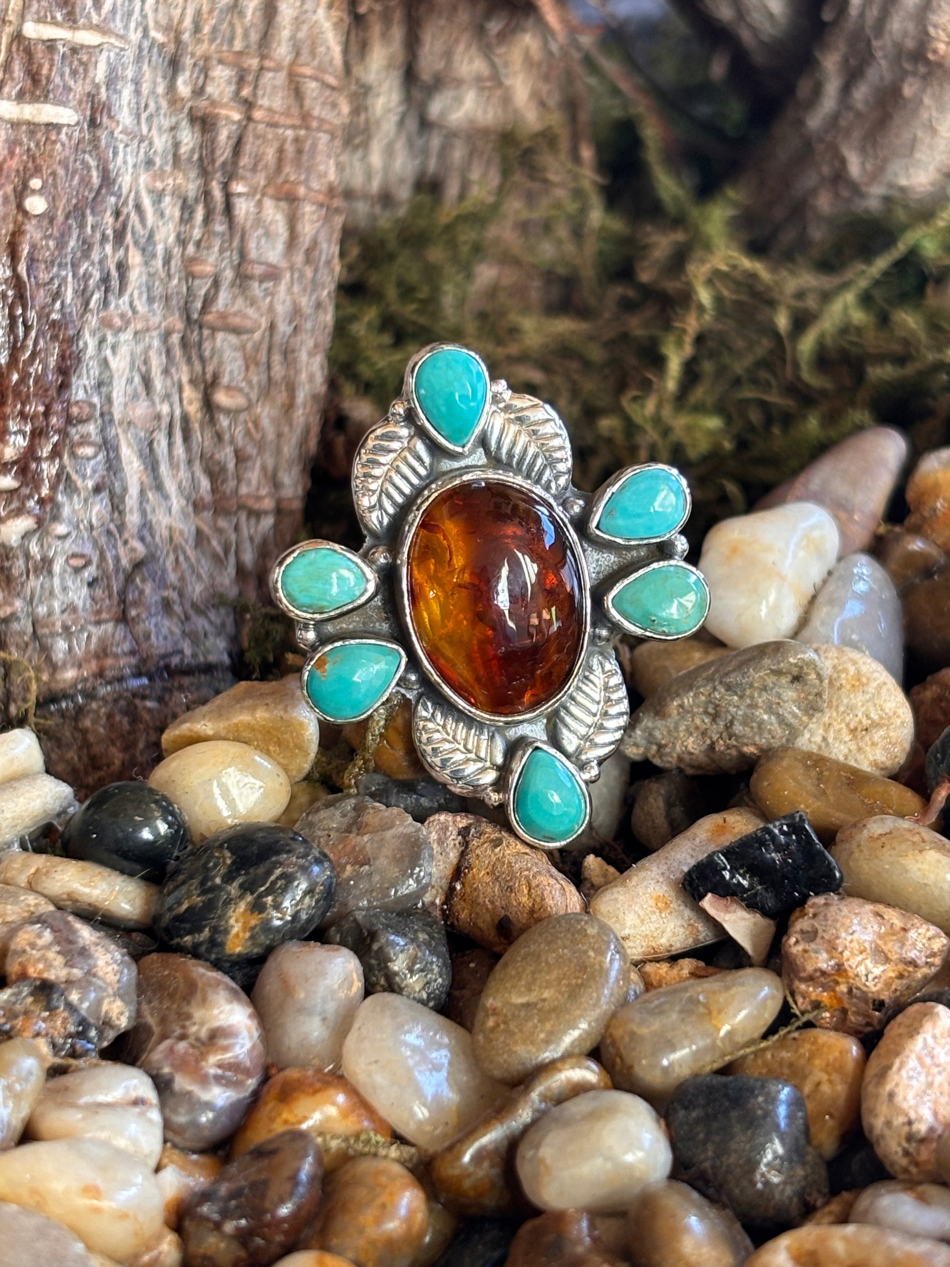 Amber & Turquoise Ring | Size 7.5