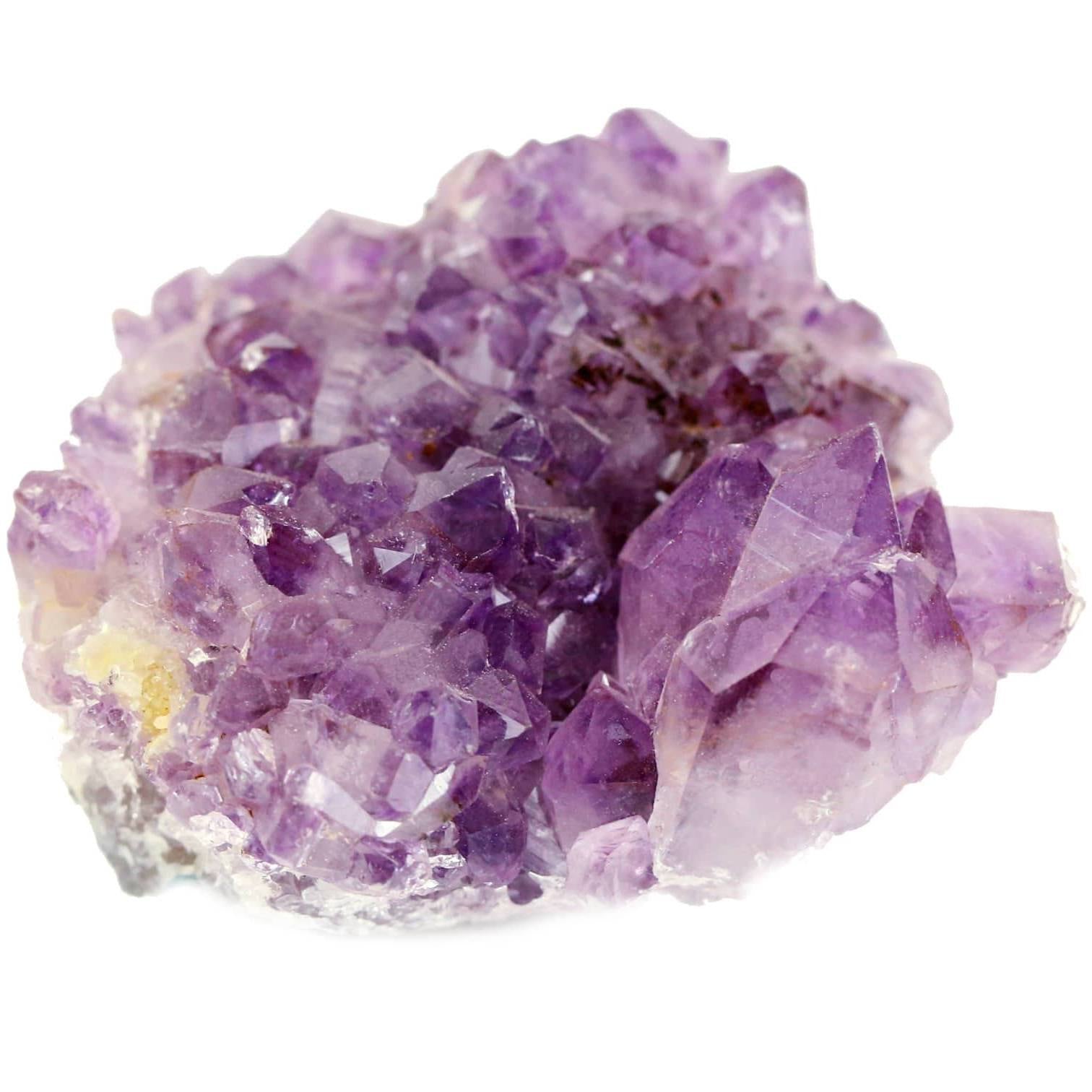 Amethyst, the stone of healing and transformation, will create a peaceful and positive atmosphere. Striking, all natural amethyst pieces may vary in size, shape, and color due to each piece’s unique, natural formation. Color ranges from light purple to dark purple, gray, and green. Some clusters include traces of powerful sought-after minerals like calcite and cacoxenite. Calcite appears as white crystals or flower petal shaped specks. This mineral symbolizes cleansing. Cacoxenite appears in golden, earthy brown spots. It encourages a focus on positivity and raising energy vibrations.