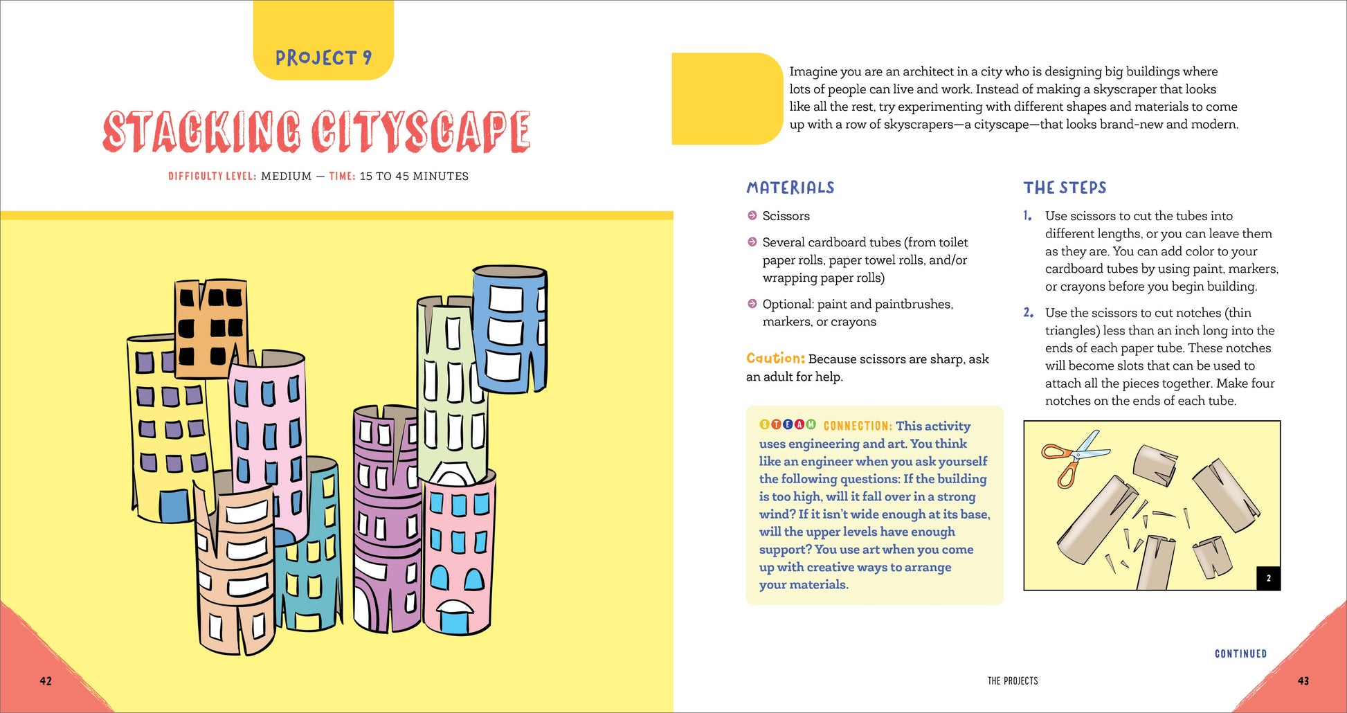 Architecture and engineering books for kids like this one can help kids develop their problem-solving skills as they answer questions about each activity and take notes on what they learn. Best of all, the projects get more challenging as the book progresses, encouraging kids to apply their new knowledge to the next activities. Kid-friendly instructions—Step-by-step guidance and illustrations make these projects easy for kids to do with minimal supervision.