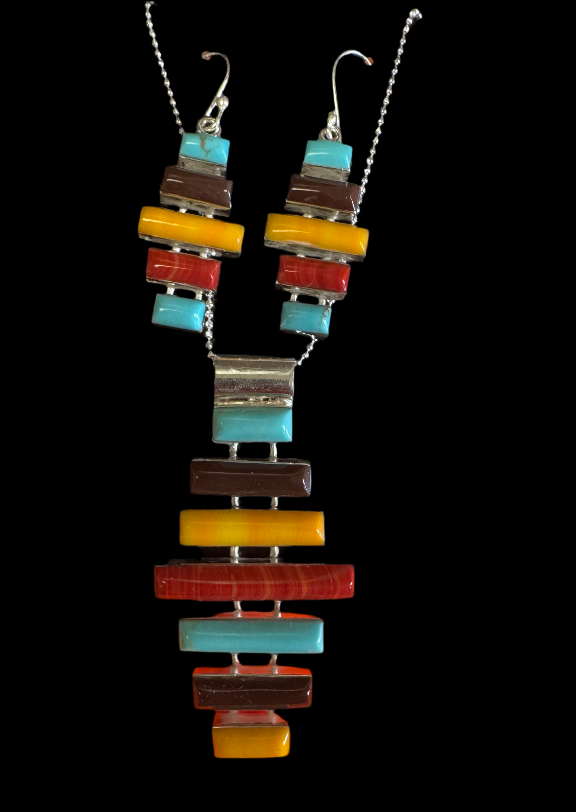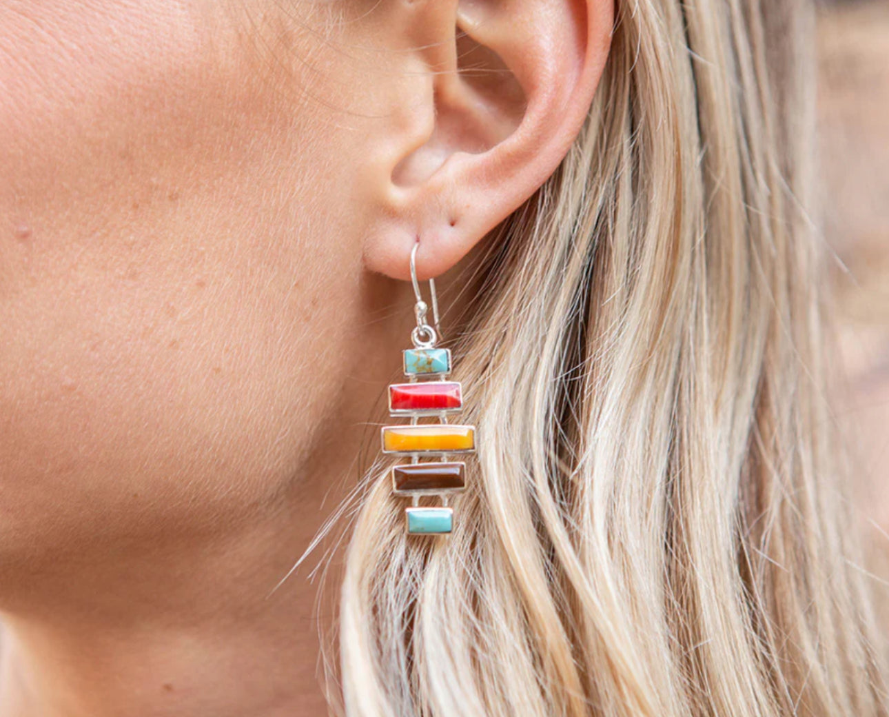 This beautiful stacked gemstone and sterling silver set is perfect for a modern twist on native style