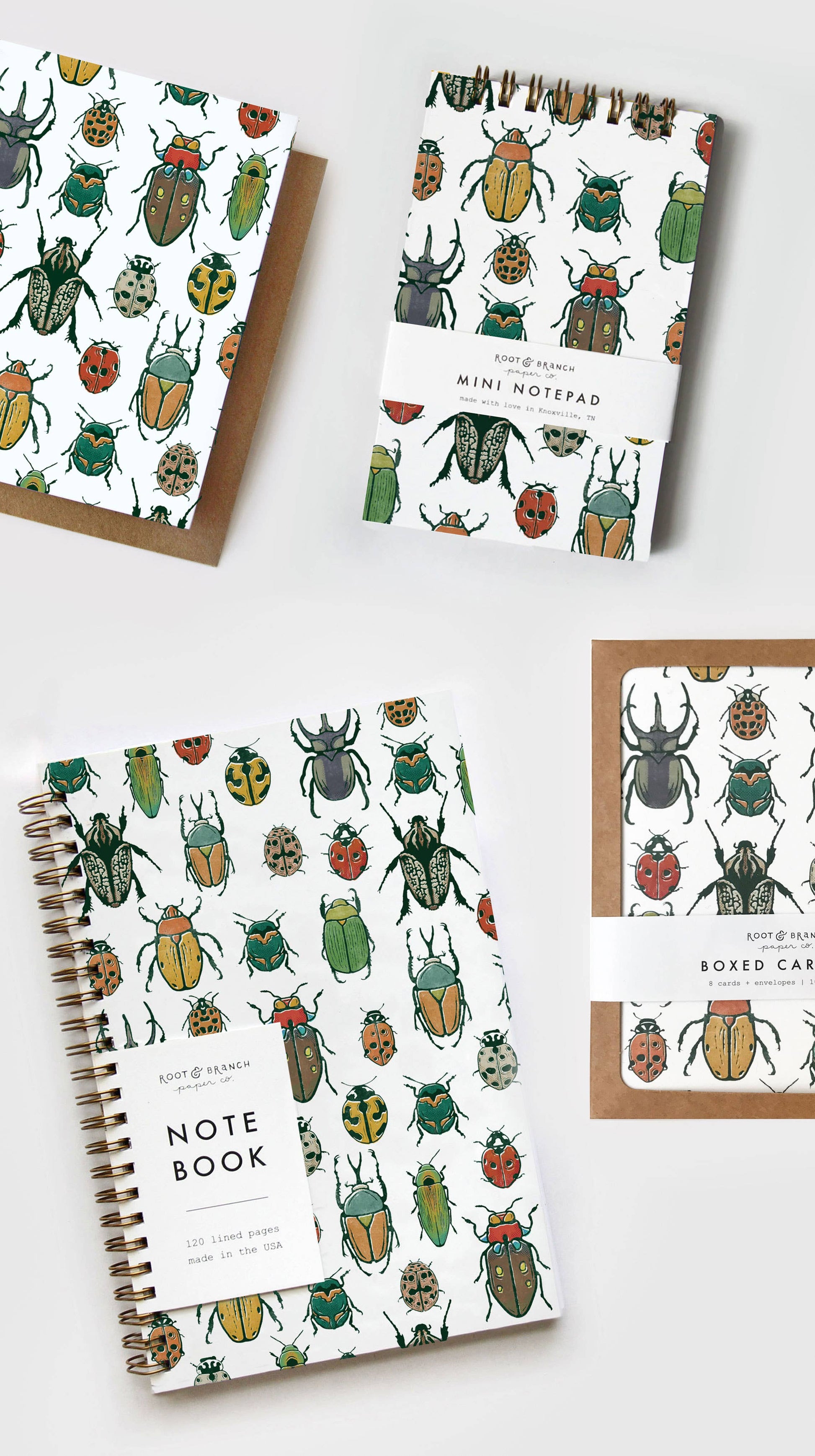 Root & Branch gold coil spiral bound notebooks, crafted by hand. Created plastic-free with minimal packaging to eliminate waste and honor our beautiful earth.