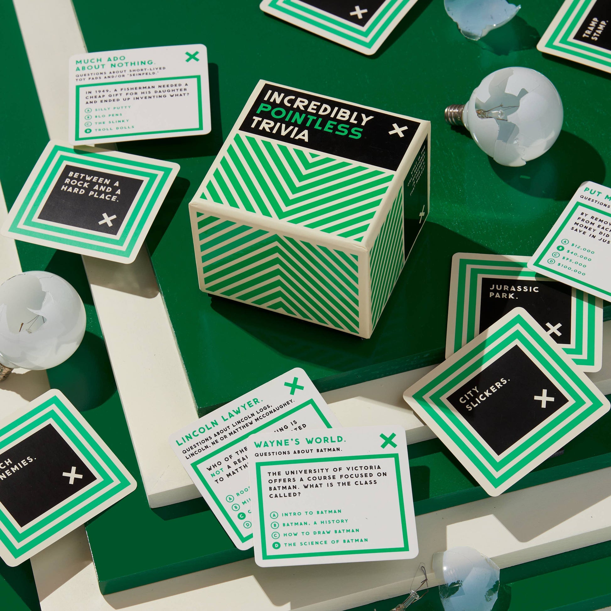 • Includes 200 unique trivia questions to test your random knowledge (to say the least).