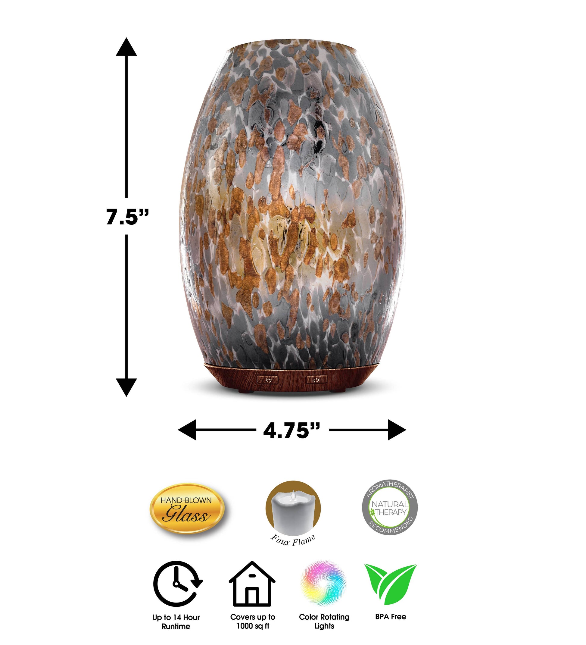 Designed by Italian artists this hand-blown glass aroma diffuser also has a faux flame.