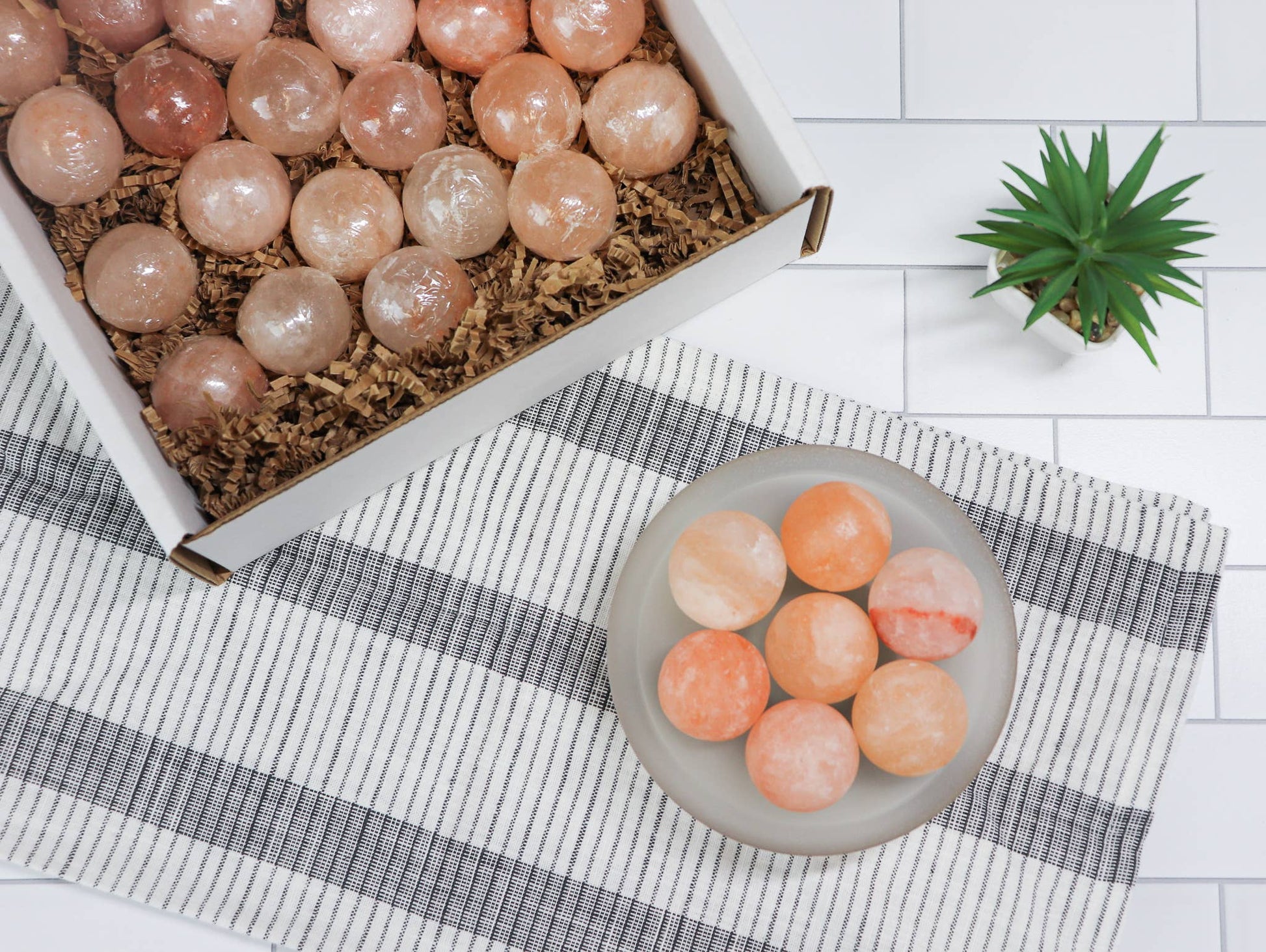 Himalayan Salt Massage Ball set by Himalayan Secrets© - the perfect way to indulge in a soothing and rejuvenating massage experience! Crafted from 100% natural Himalayan salt, these massage balls offer an array of health benefits, including reducing muscle tension and promoting healthy blood circulation. The massage balls can be easily warmed up in a microwave for 30 seconds, or on a skillet set on low heat. Their unique shape provides a comfortable grip and allows for easy maneuverability, making them the perfect choice for a relaxing massage session. Care: Wipe to clean. Do not rinse. Disclaimer: Please use with care and caution if you have sensitive skin. Comes in a corrugated box with crinkle paper. All stones are shrink-wrapped to avoid contact with moisture.