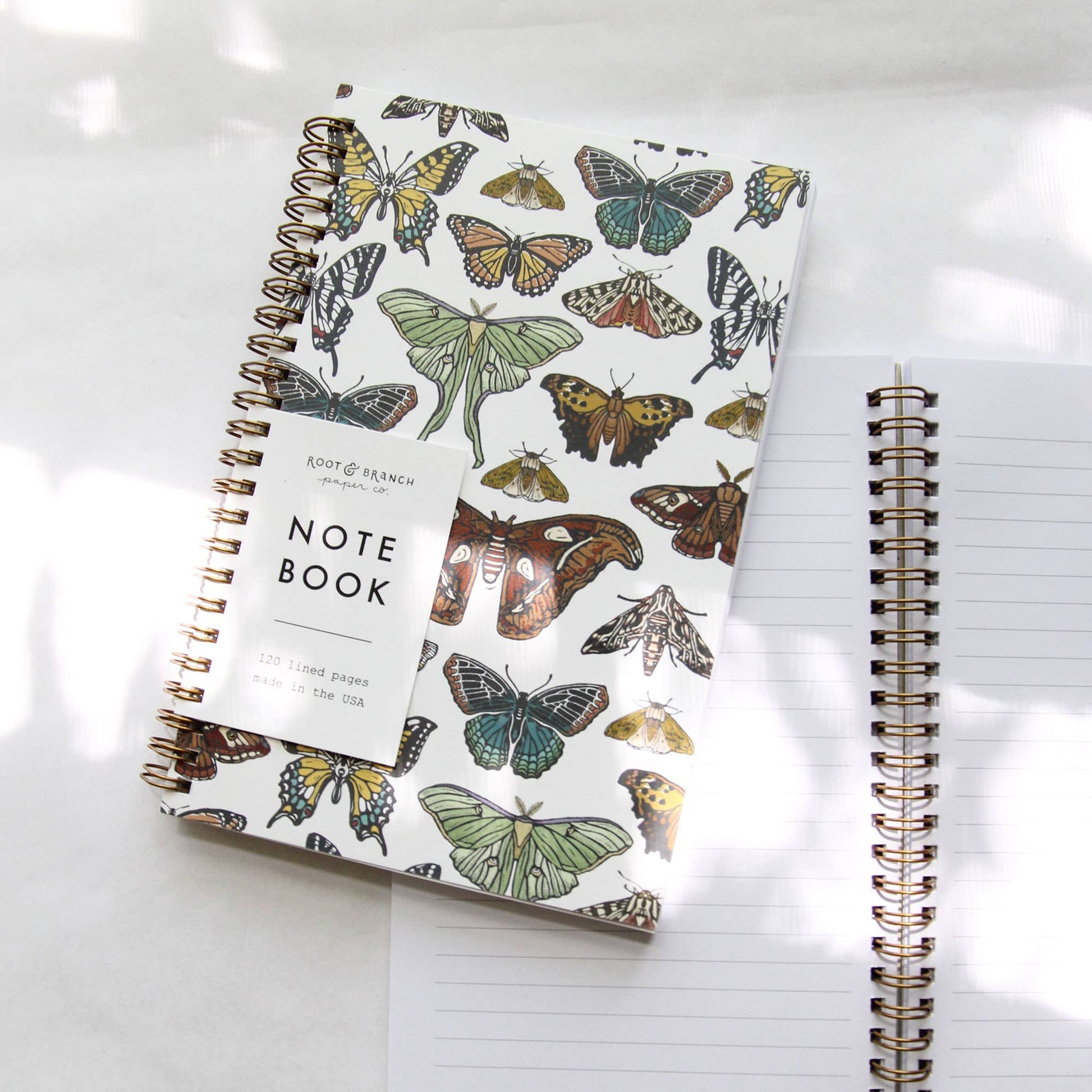 Root & Branch gold coil spiral bound notebooks, crafted by hand. Created plastic-free with minimal packaging to eliminate waste and honor our beautiful earth.