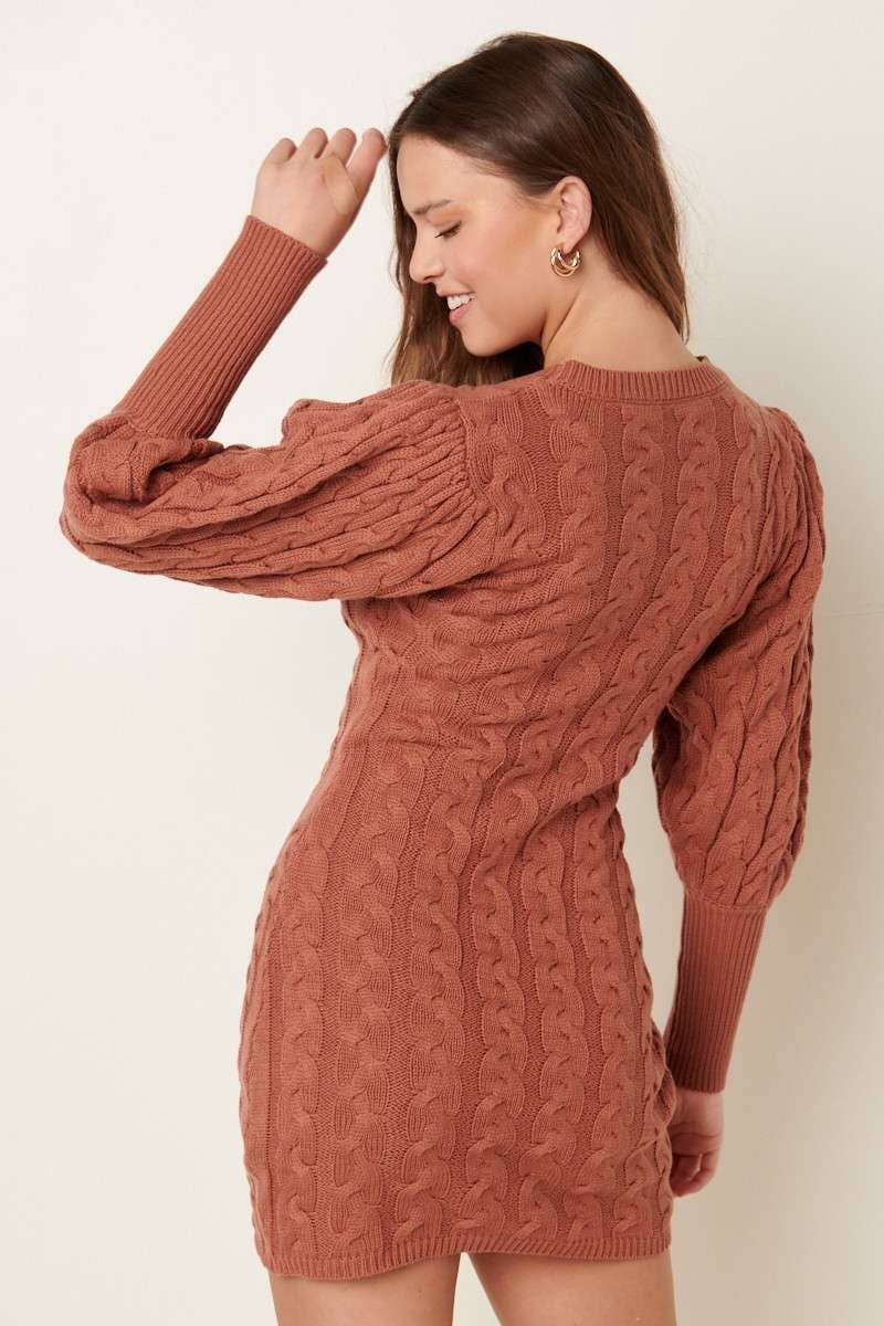 CABLE DETAIL PUFFSLEEVE SWEATER DRESS