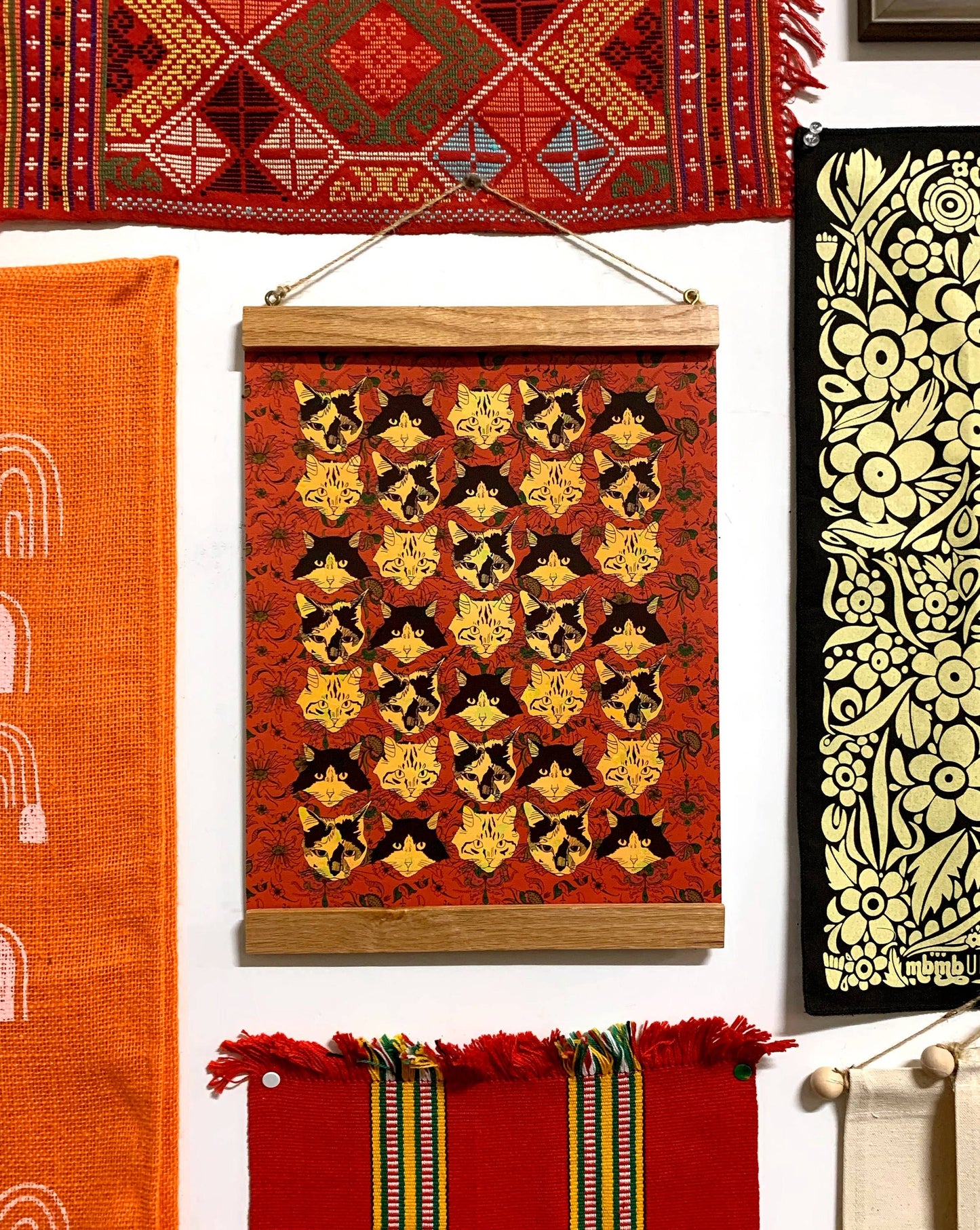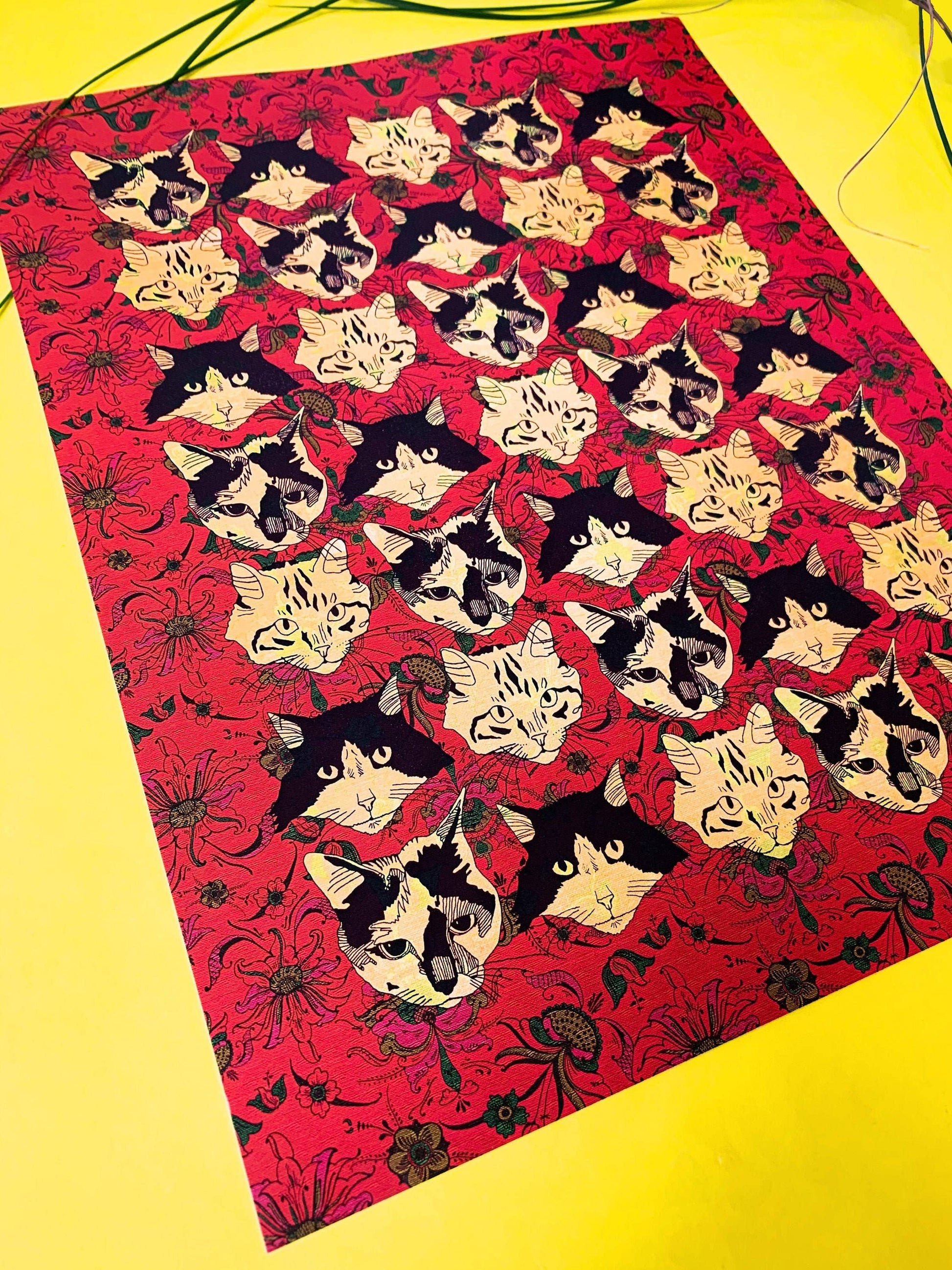 Catmouflage. I can't type that without chuckling. An array of kitties assembled into a pattern sure to be purrrrrfect for your home decor. Yeah, I just went there.