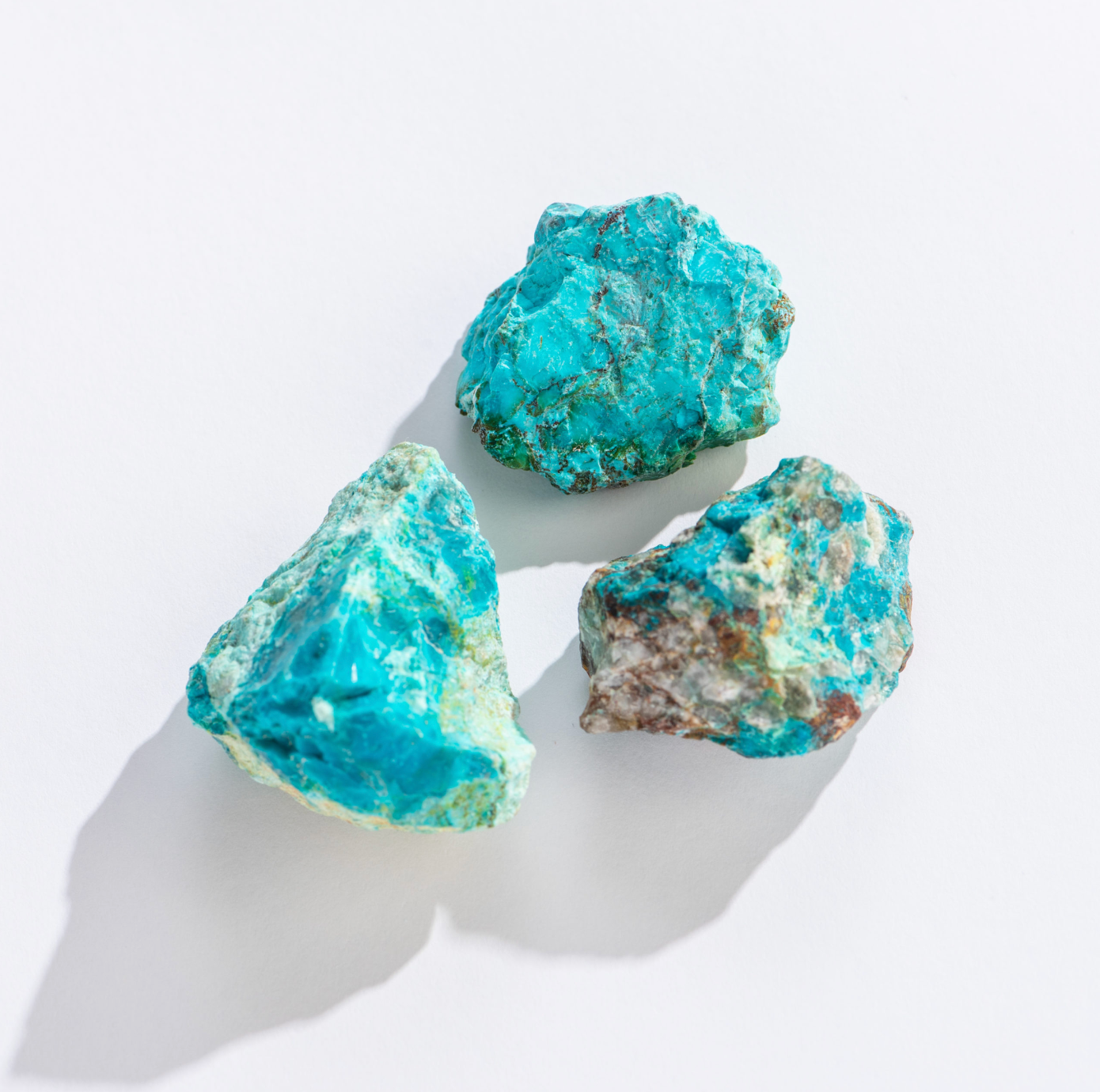 Chrysocolla is a bright teal stone that forms in crusts and masses within the Earth.
