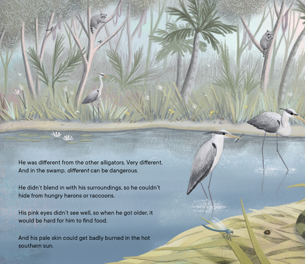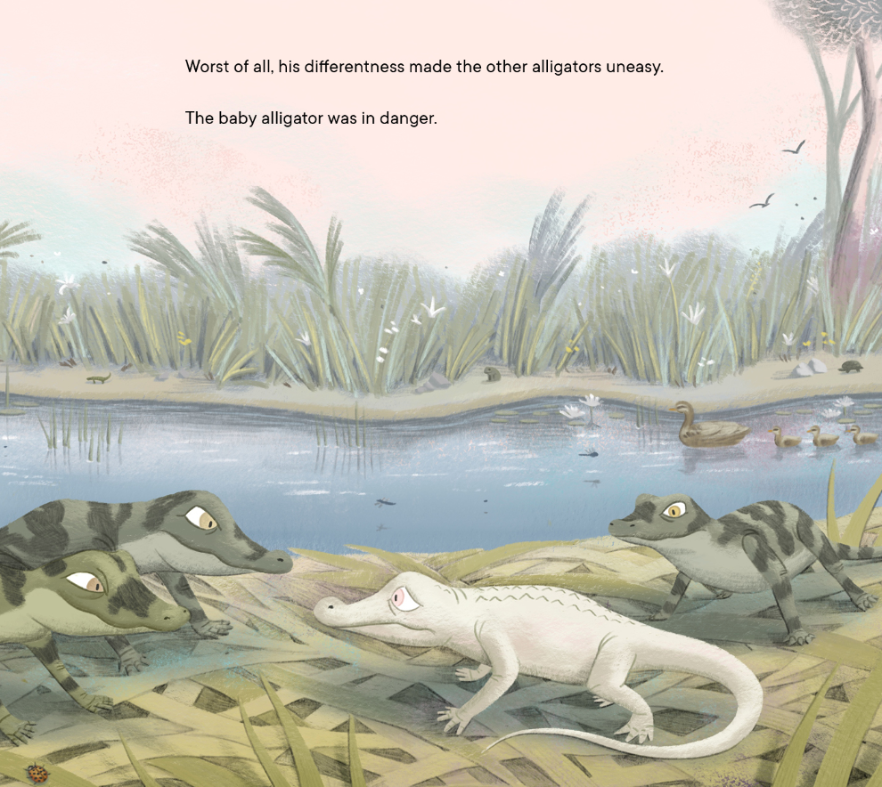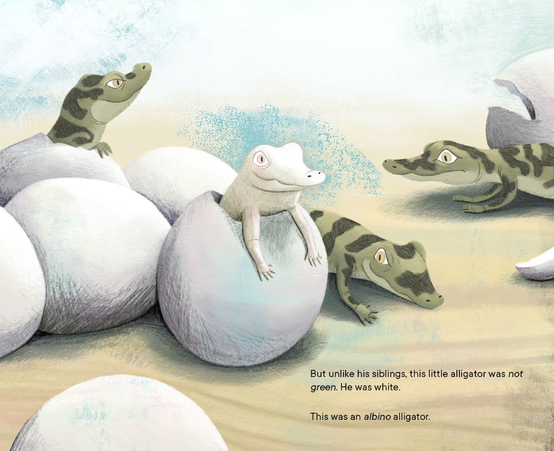 Claude is a celebrity alligator & the mascot for San Francisco's California Academy of Sciences. His story started almost 25 years ago in Louisiana, where he hatched out of his egg to discover he looked different from the other hatchlings. They were green and Claude was white. The other hatchings avoided him, and his color made him vulnerable to predators. So Claude went to a special zoo that cared for alligators where he lived in a pen by himself. Now he was safe, but alone.