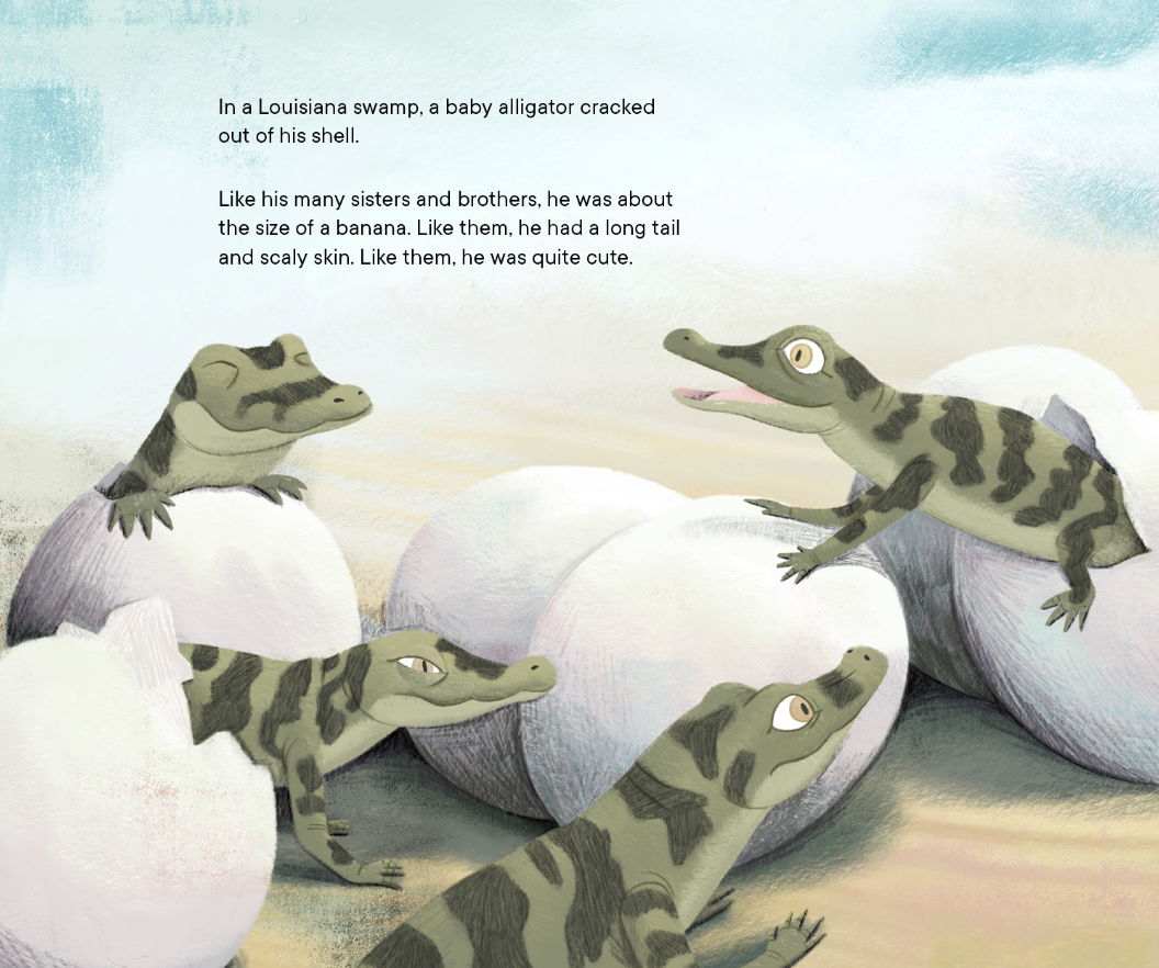 One day, scientists at the California Academy of Sciences heard about him and asked the zoo if he could come and live in the Academy's swamp. He made a 2,800 mile journey to his new home, where he had a surprise--he would share his swamp with Bonnie, an alligator who the scientists hoped would be a friend for Claude.