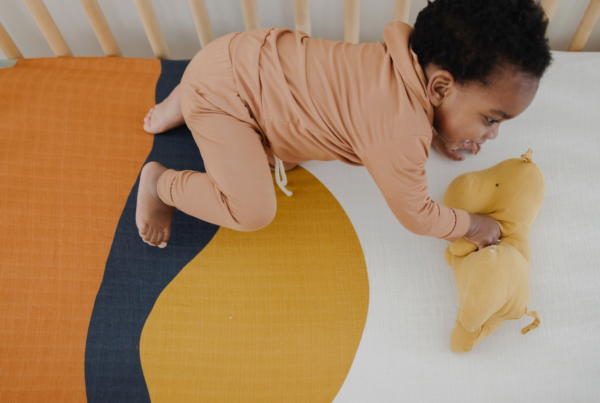 A golden sun setting over the mountains. ☀️ Made from 100% cotton muslin, our comfy cozy crib sheets are made to keep your little one the perfect temperature and look beautiful in your nursery. The loose weave of the muslin allows for air flow and prevents overheating. Sheets feature elastic corners for easy application and easy removal. 100% cotton muslin Loose weave that breathes and keeps your little one the perfect temperature Machine Washable 52" x 28" x 6" - fits standard crib/toddler bed mattress A fun pattern you and your kids will love