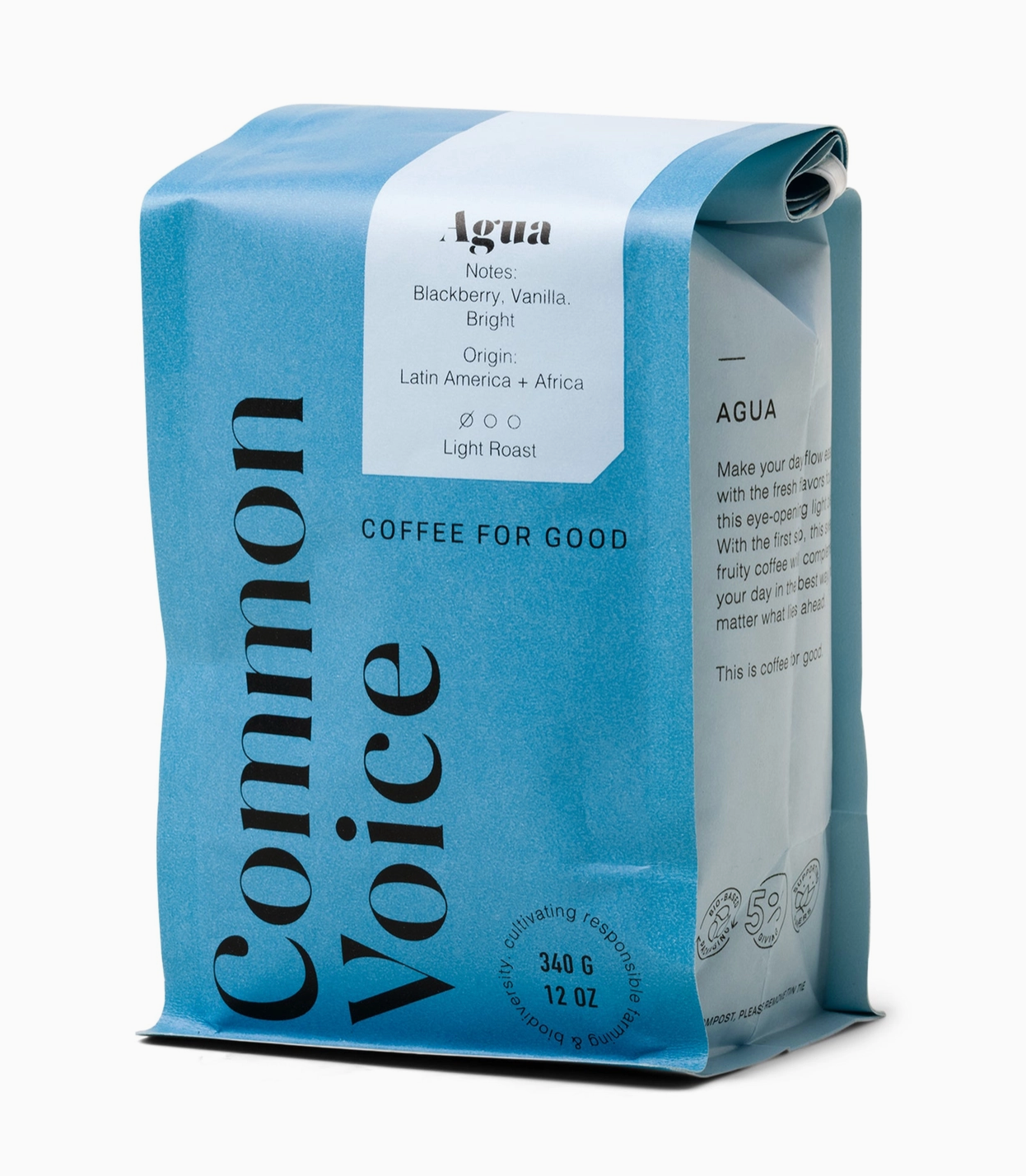 Agua: is a light roast coffee blend, sourced from Latin American and African origins. It boasts a vibrant, delightful flavor profile, with notes of blackberry, vanilla, and brightness. Enjoy the perfect cup of coffee with Agua.