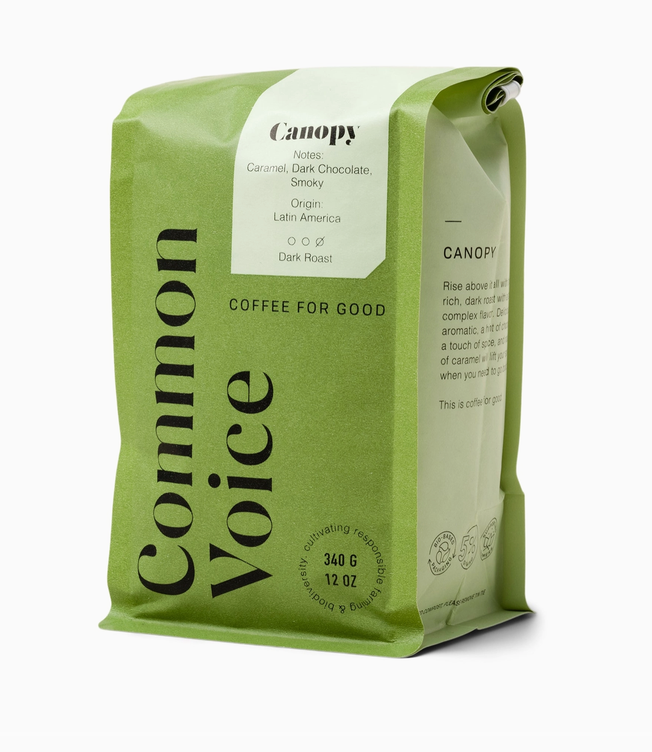 * Canopy: is an exquisite dark roast, is a blend of Beneficio San Vicente from Santa Barbara, Honduras, and Kovachii from Cajamarca, Peru, providing a strong, complex flavor and deep aroma unlike any other. Roasted to perfection, hints of chocolate, spice, and caramel will enhance your coffee experience, while notes of dark chocolate, smoky, and caramel will have your taste buds soaring.