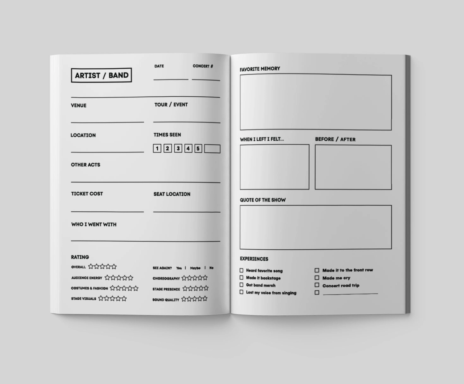 Concerts Remembered, the ultimate concert journal and memory book designed specifically for concert lovers and music enthusiasts. This beautifully crafted concert diary serves as a perfect gift for music fans, allowing them to document and relive their cherished concert experiences. With its elegant design and thoughtful features, Concerts Remembered, concert journal provides a dedicated space to capture the magic of over 30 unforgettable concerts. Its compact size of 6 x 9 inches (15.24 x 22.86 cm) makes it convenient to carry along to concerts, ensuring that no memorable moment goes unnoticed.