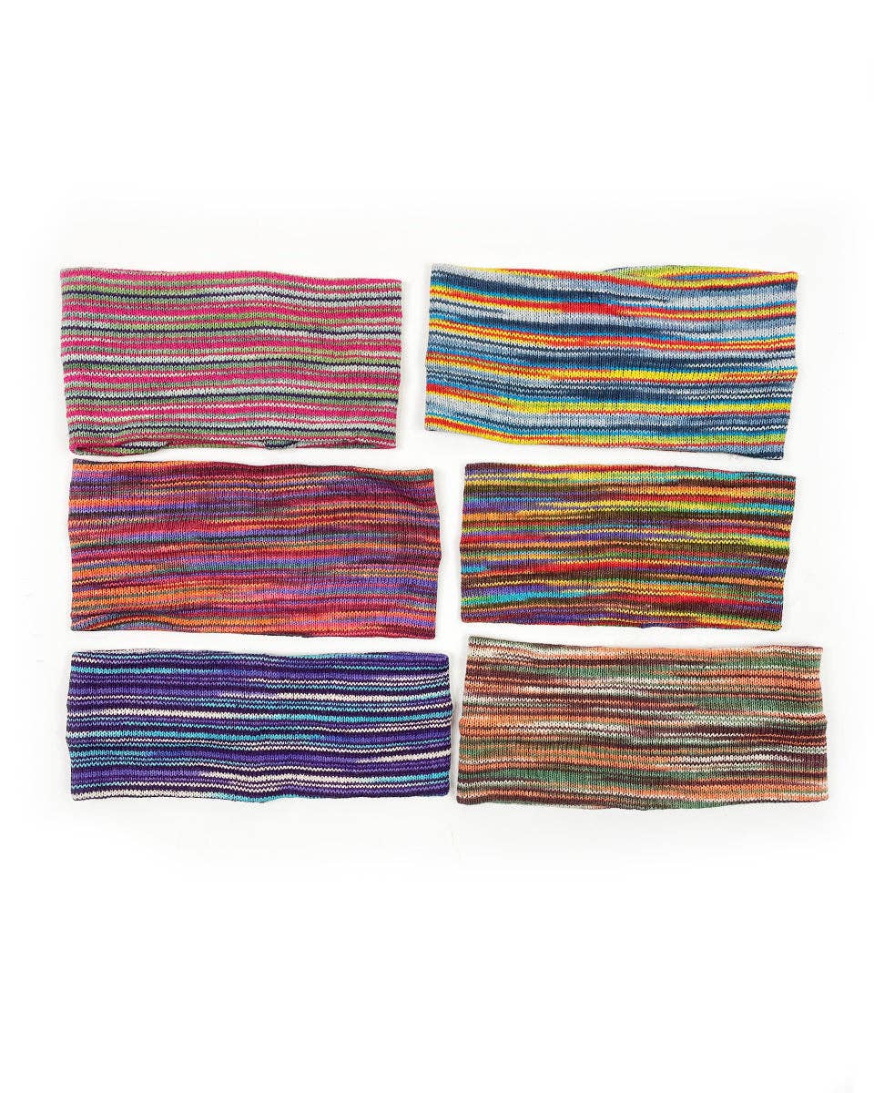 These headbands are made out of a multi-color knit cotton, and had a small stretch.