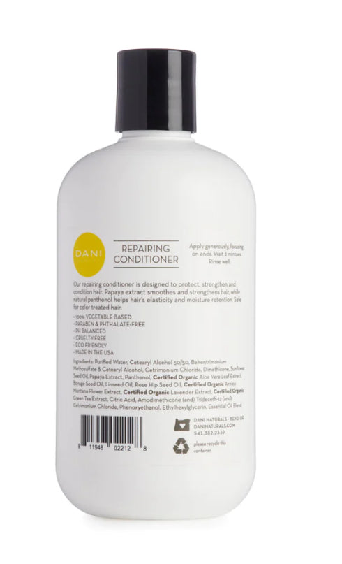 DANI Sulfate Free Sandalwood Vanilla Conditioner is made with certified organic ingredients and 100% natural vegetable oils. Our thick, rich formula contains organic aloe vera to add strength and shine, and panthenol (a vitamin B derivative) to increase hair's elasticity and moisture retention. You'll feel the difference! Safe for color treated hair.