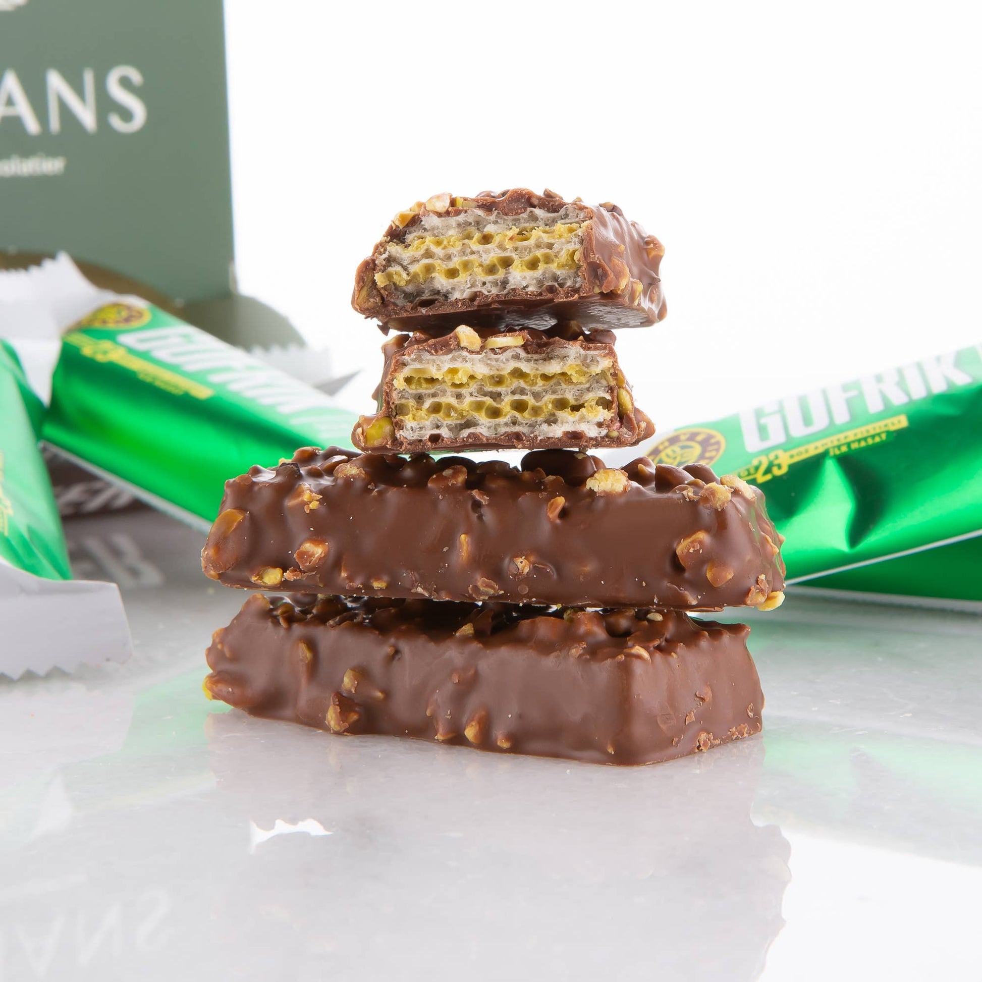 Each bite brings you the essence of a luxury chocolate Dubai experience. Each chocolate pistachio waffer bar is individually wrapped for freshness, offering a delightful bite-size treat.