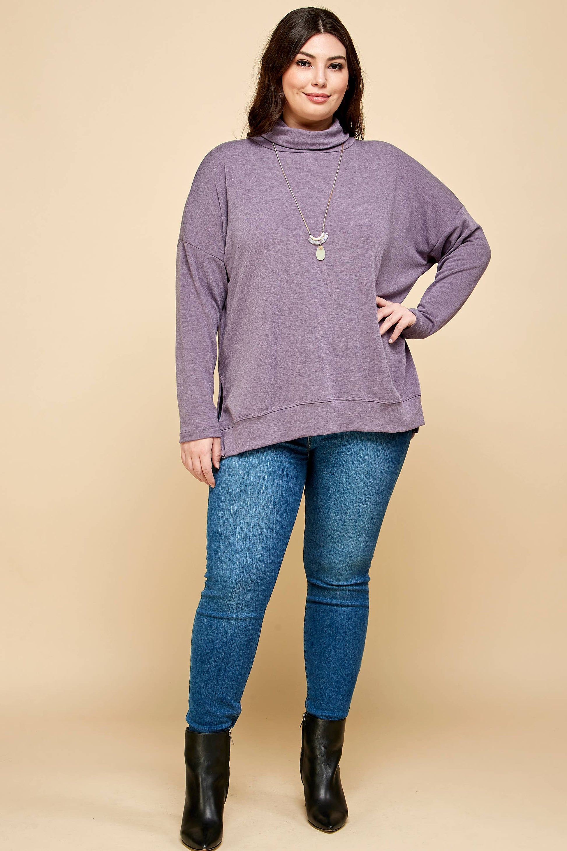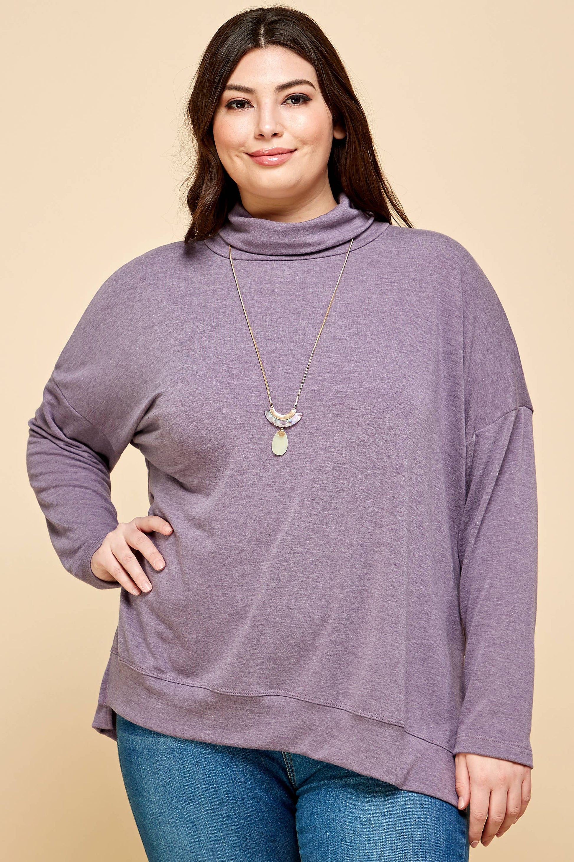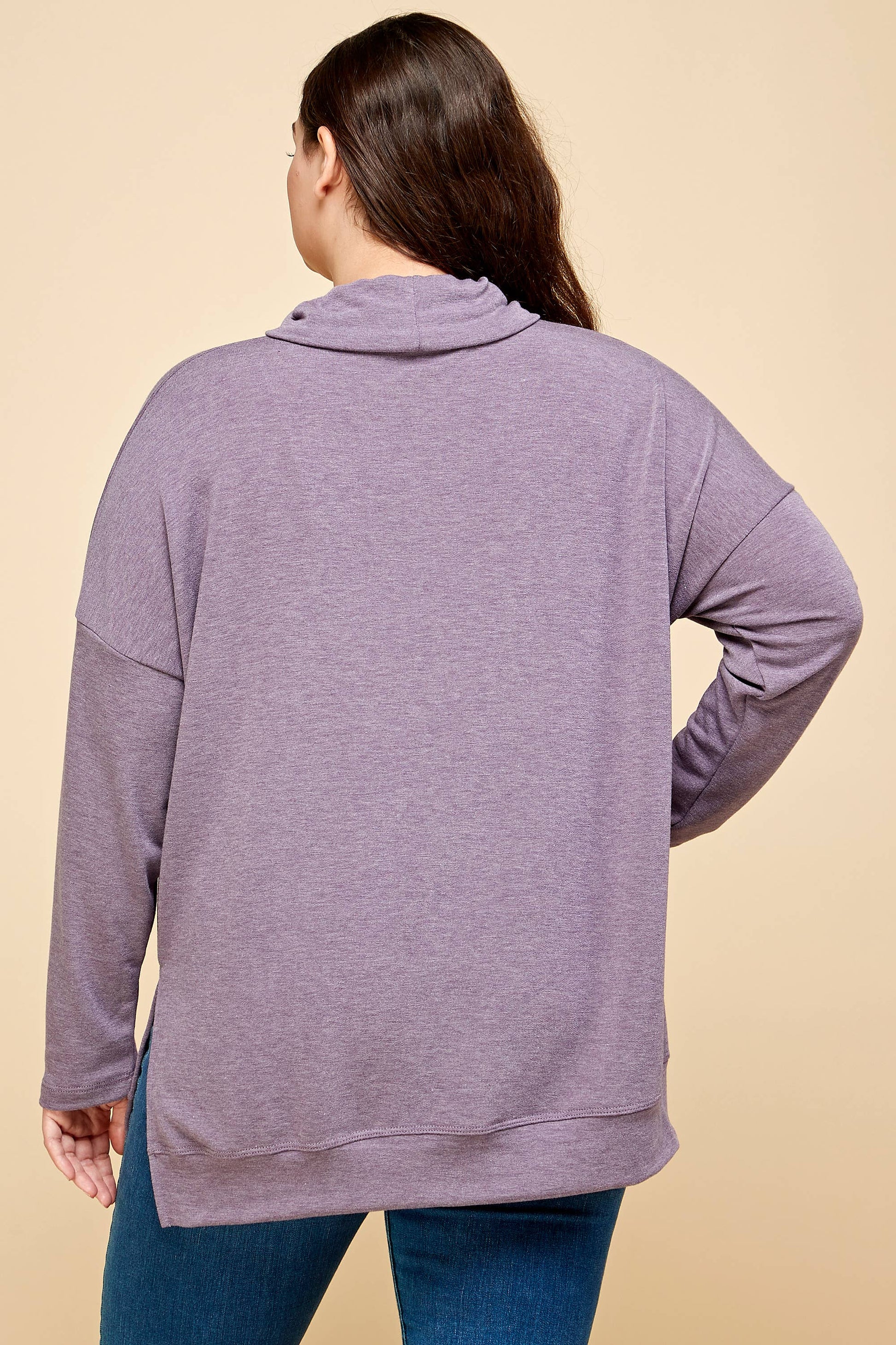 Plus Size Two-Tone French Terry Dolman Sleeve Relaxed Fit Pullover with Side Slits