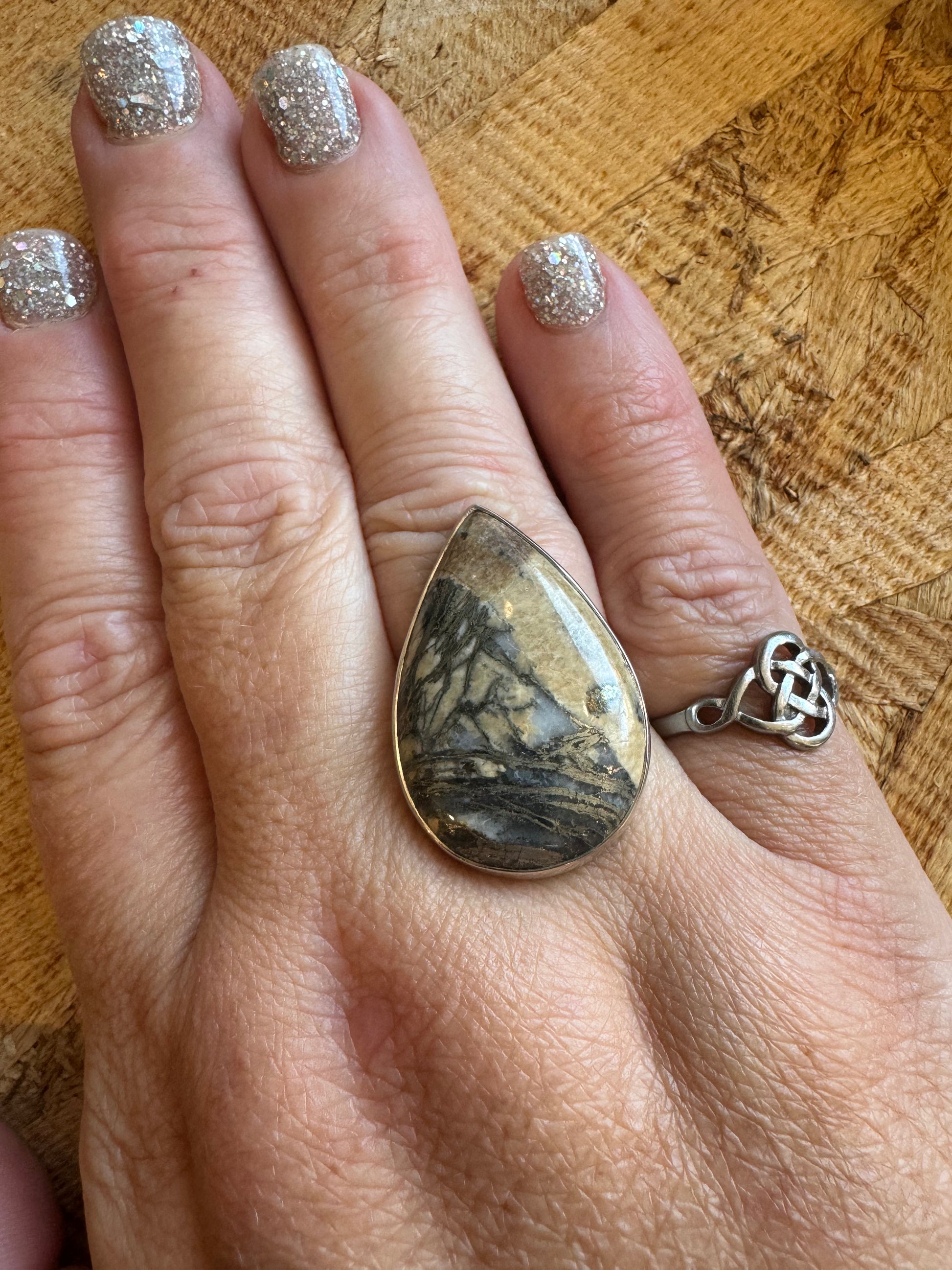 Feather Pyrite Ring | Adjustable