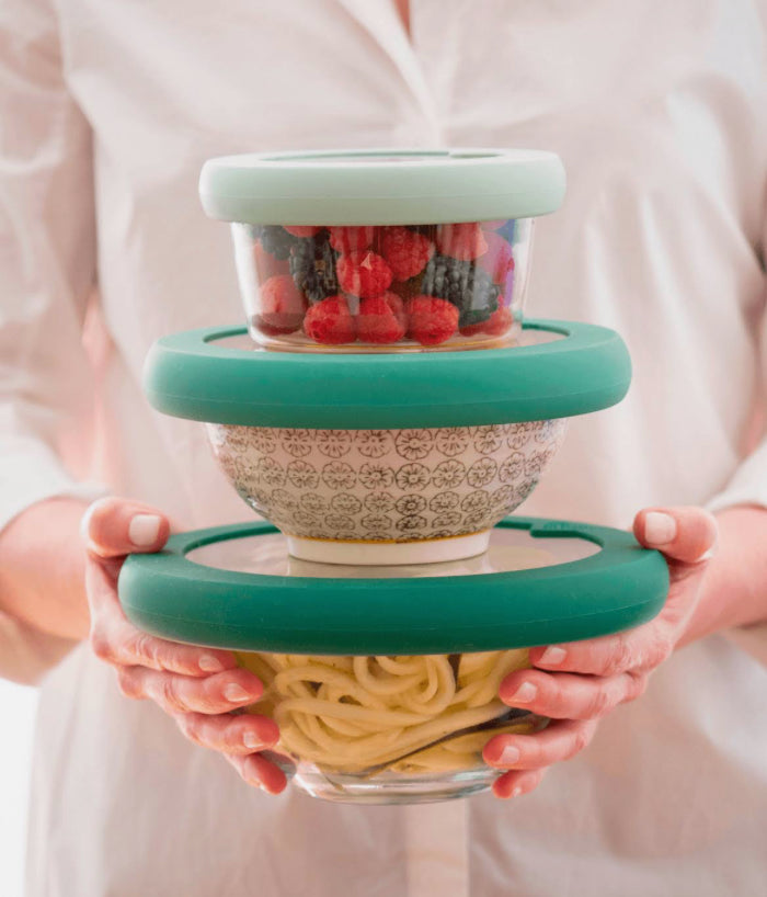 Food Huggers Silicone and Tempered Glass Bowl Lids