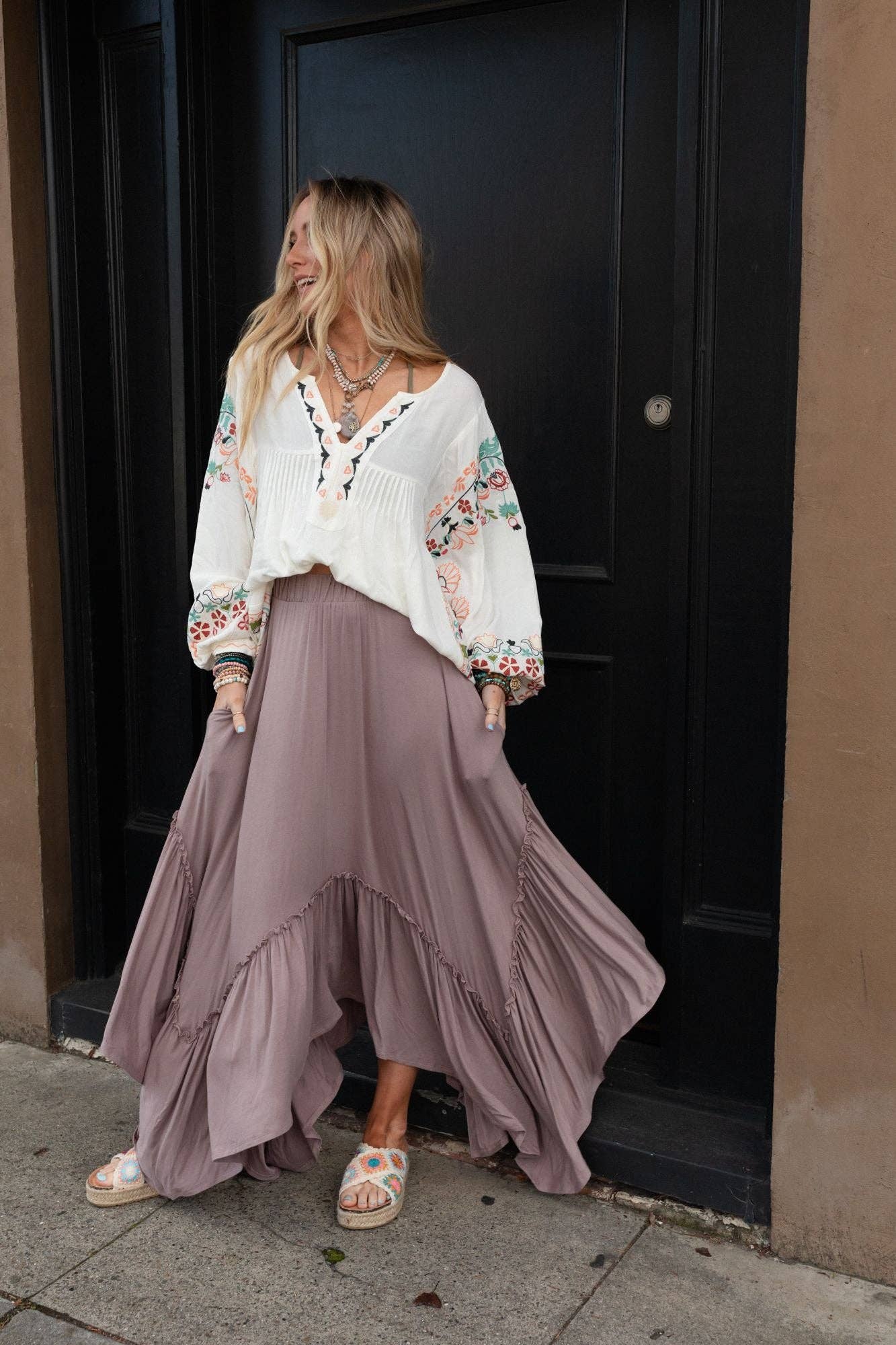 So flattering and effortless, the Forever Beauty Maxi Skirt is designed to make a statement while expressing your unique boho western self!