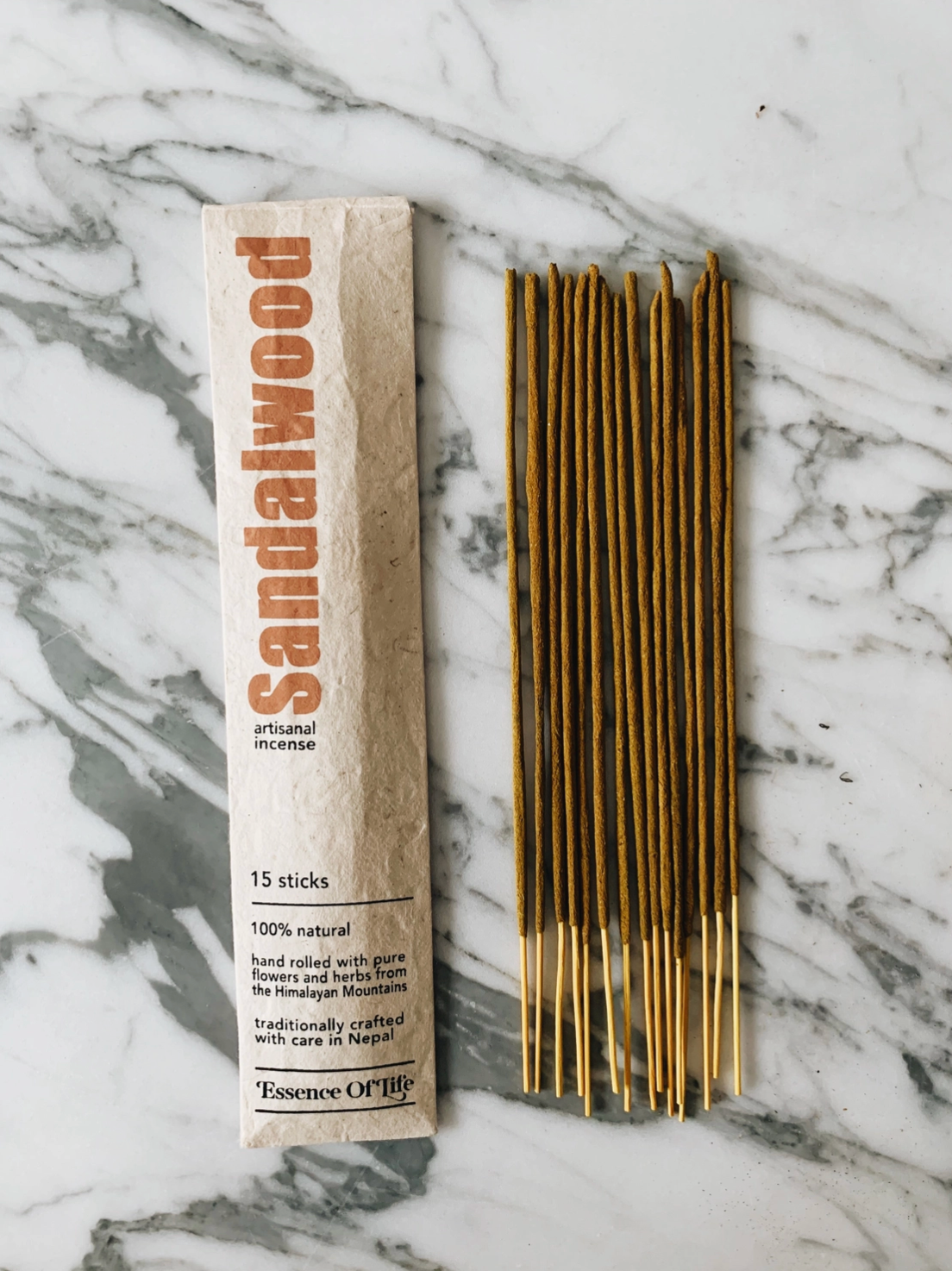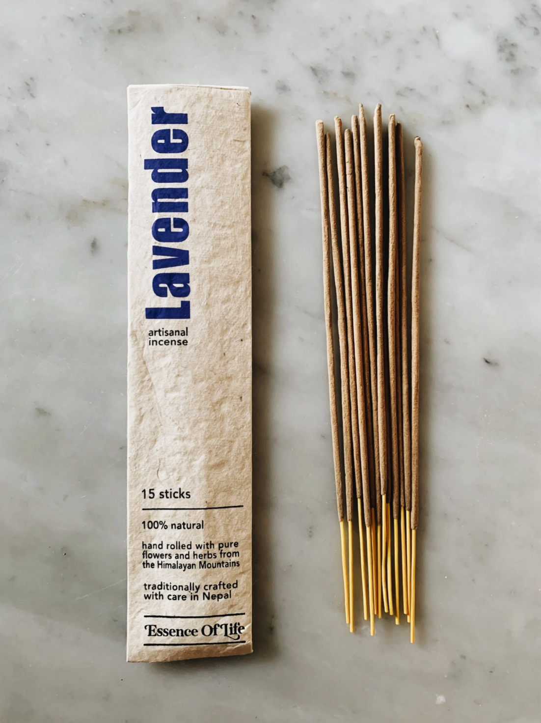 Our handcrafted Artisanal incense produces a clean-burning, rich, earthy and pure aroma. Used to purify the environment and as an aid for meditation, these ancient recipes help to calm and soothe a restless mind. Hand rolled ethically and sustainably in Nepal in small batches. Each stick is made by grinding the herbs, flowers and spices into a powder and then dipping the sticks in resin, rolling the ground herb onto the stick, and then sun-drying. Packaged with eco-friendly handmade Lokta paper, made from the Lokta bush. The bush is a renewable resource with the ability to regenerate within six years. * No toxins, lead, parabens or phthalates * Made only with high altitude herbs, resins, flowers and spices from the Himalayan mountains * eco-friendly and clean burning * vegan, cruelty free * Petroleum-free * no artificial fragrances, perfumes, dyes or glued * Burn Time per package: 50 to 60 min 15 sticks