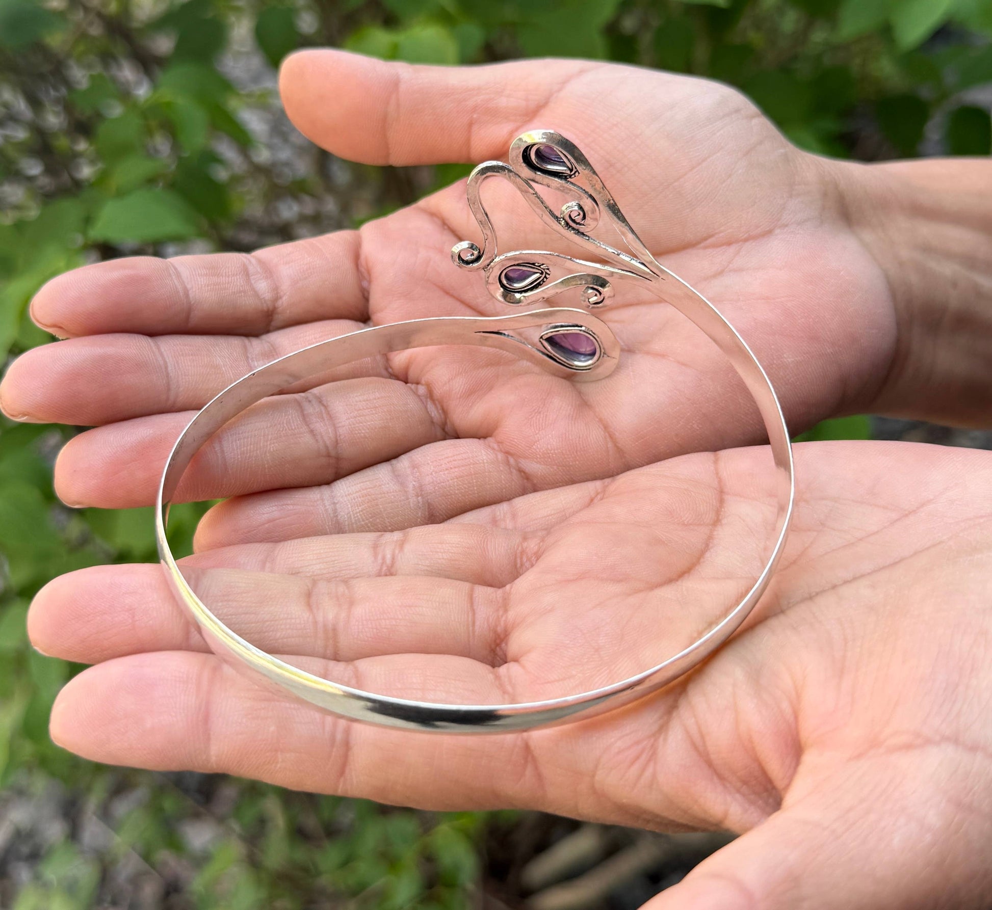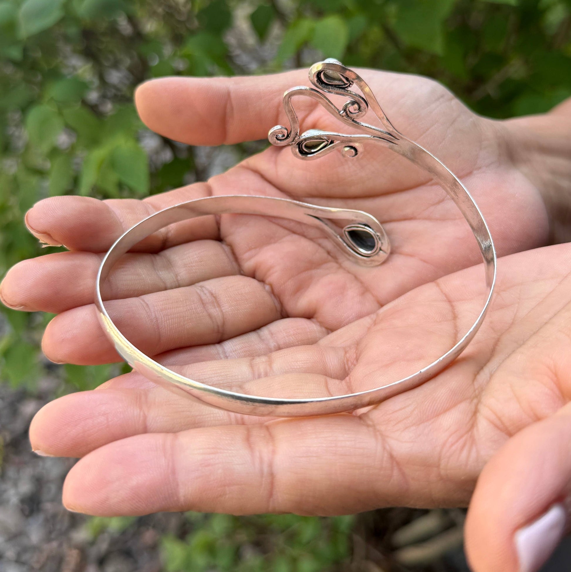 Whether worn as a bold armlet, a statement armband, or a classic cuff bracelet, this versatile accessory adds an exotic touch to any outfit. The open design allows for a comfortable, adjustable fit on most arm sizes.