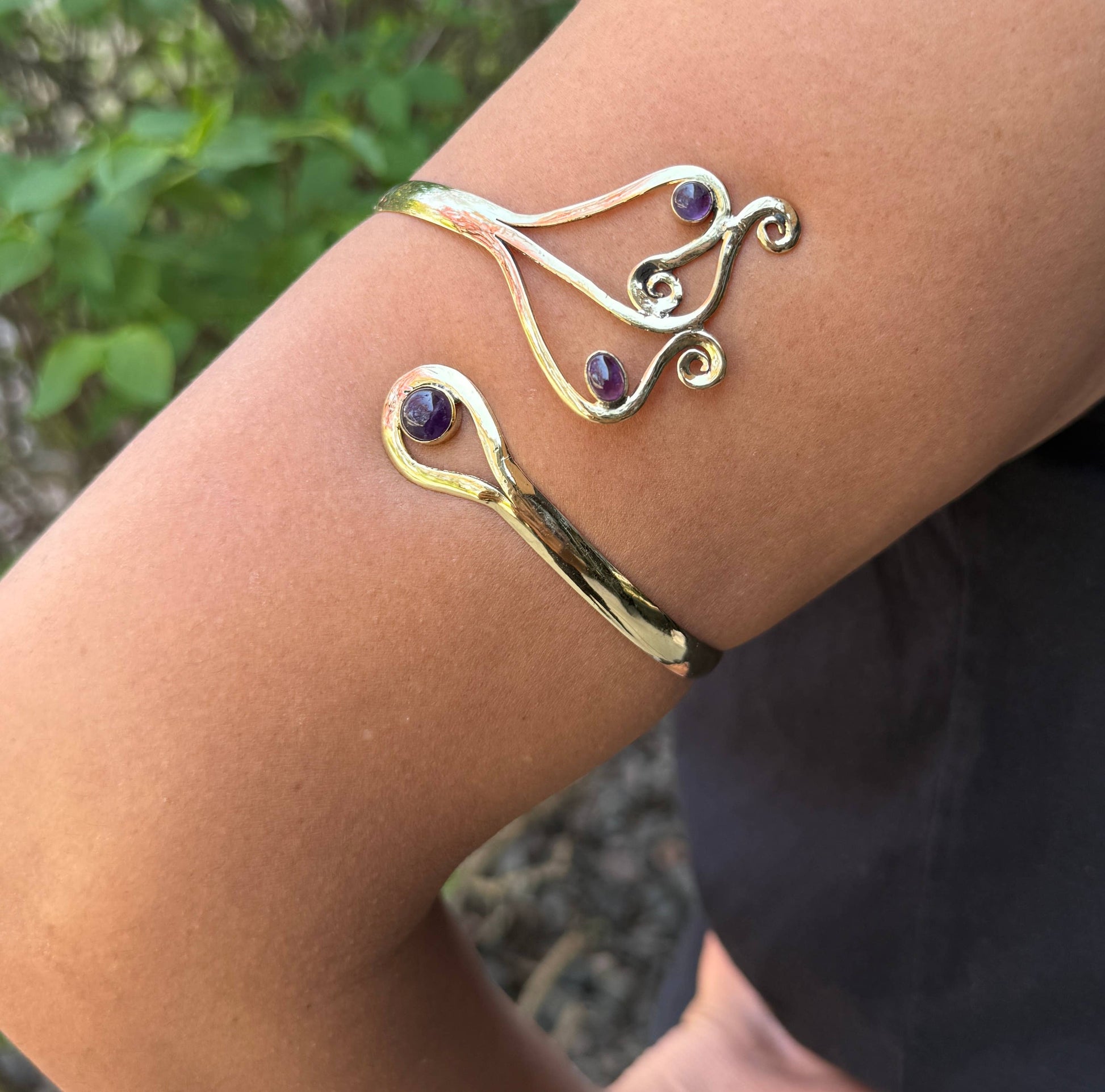 Elevate your style with this stunning handcrafted brass arm cuff bracelet, a unique blend of traditional Indian craftsmanship and bohemian elegance. Meticulously handmade by skilled artisans in India, each piece features genuine natural stones carefully set into warm, polished brass.