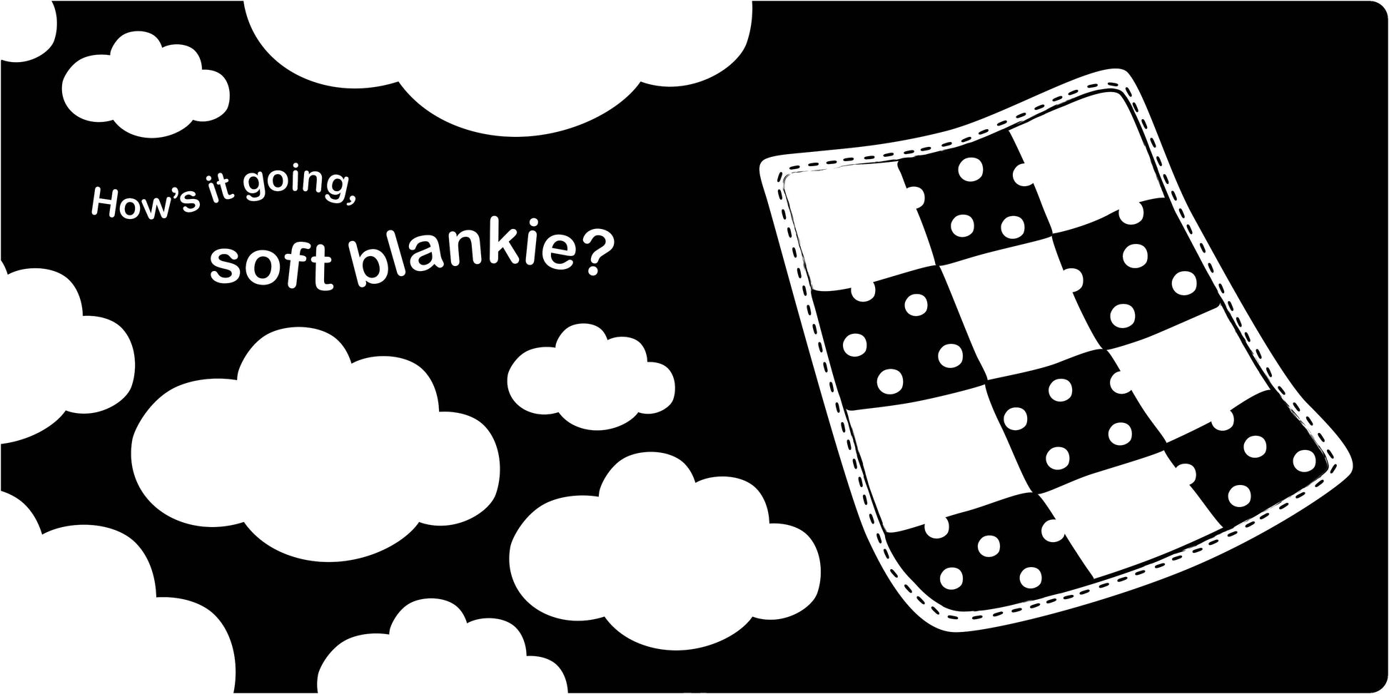 A charming high-contrast introduction to bedtime. Black-and-white patterns and illustrations pair with friendly greetings for favorite pjs, a teddy bear, a comfy pillow, and more.