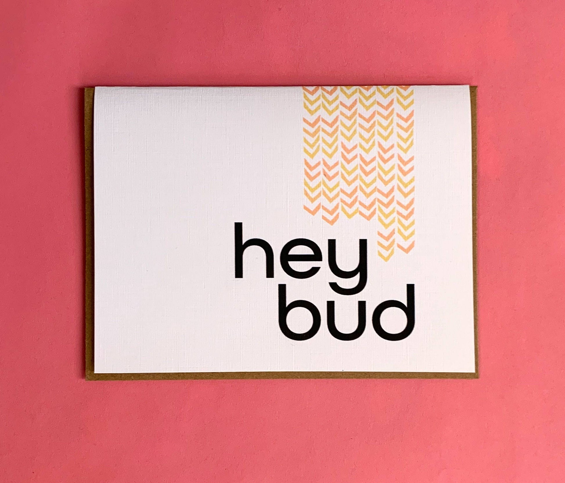 this card measures 4.25 X 5.5 Inches when folded and is printed on white linen finish card stock. It comes with a coordinating 100% recycled paper bag envelope.