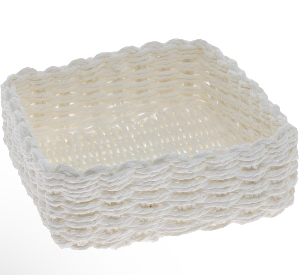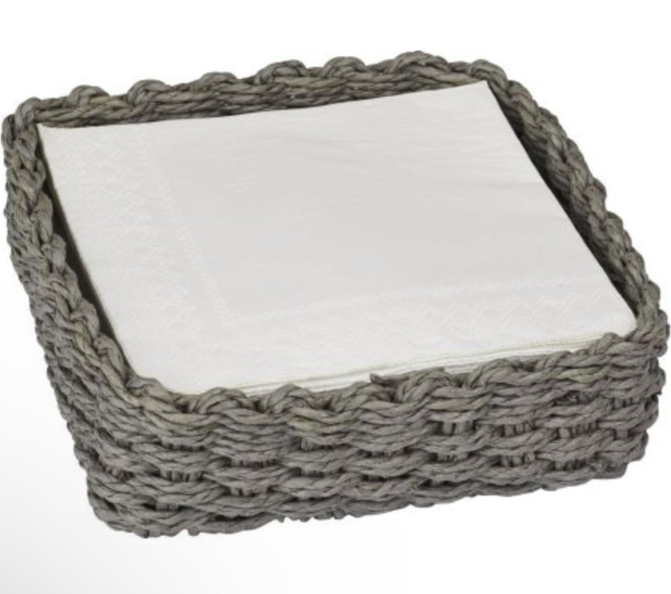 - NAPKIN HOLDER BASKET: Flat caddy provides stylish storage space for paper napkins; baskets are crafted from woven paper fabric