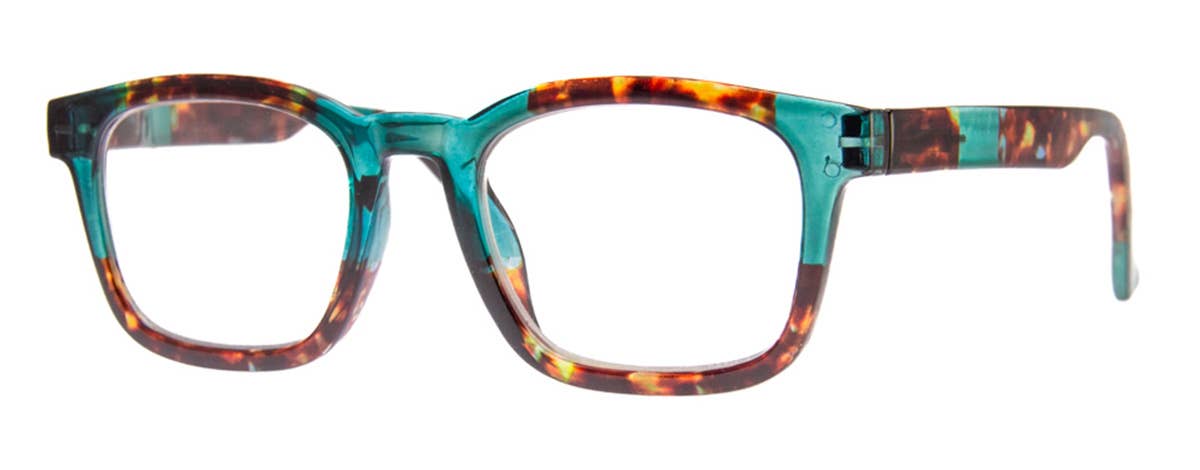 Rectangular Reading Glasses in a fun two-tone print. Impact and Scratch Resistant Lenses.