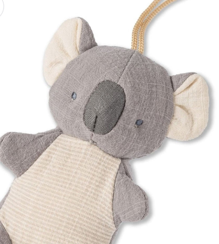 - Plush animal is made from soft cotton fabric, which includes embroidered details and a natural color palette