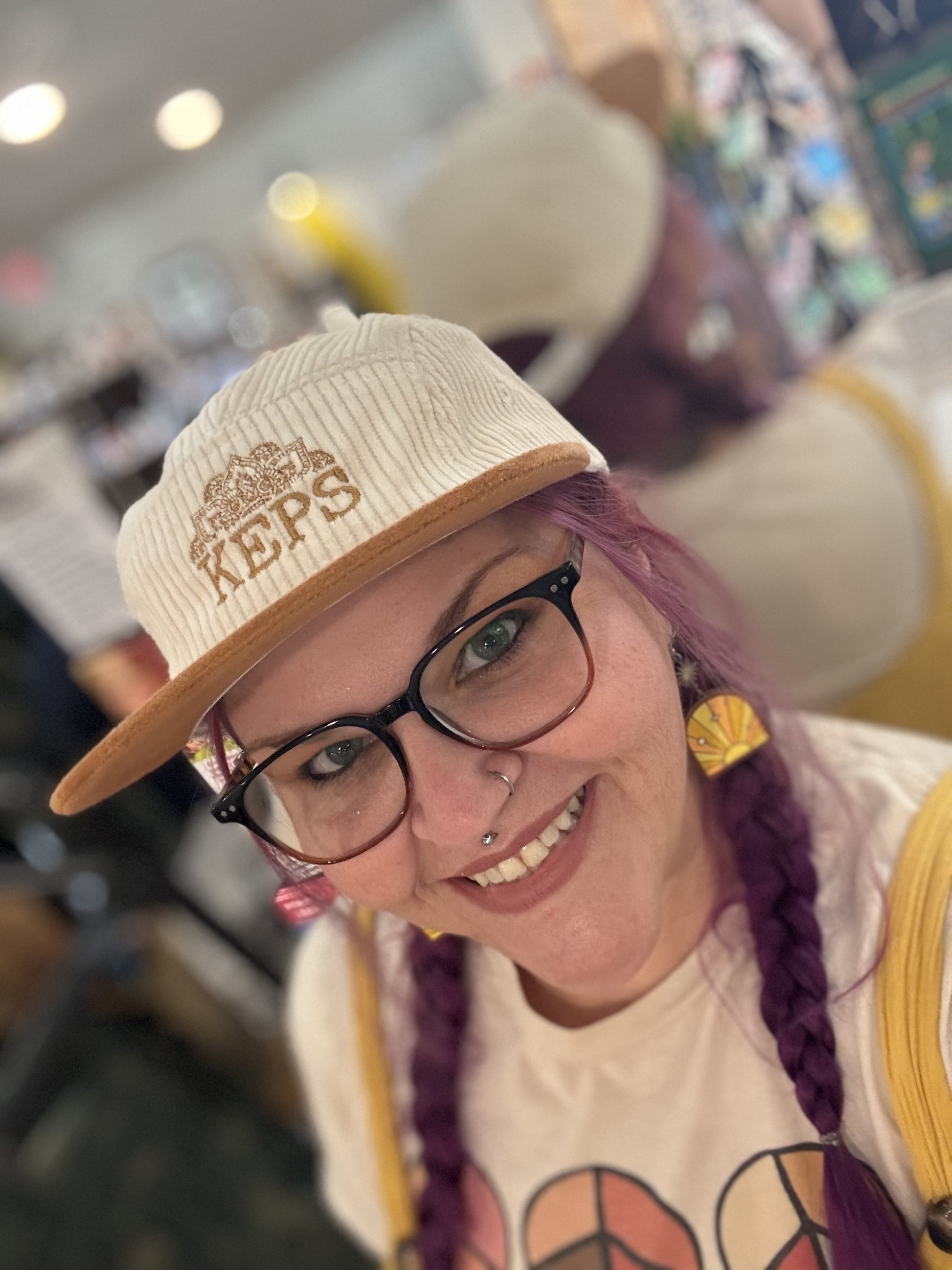 This adorable hat features a soft corduroy fabric, with embroidered KEPS logo.