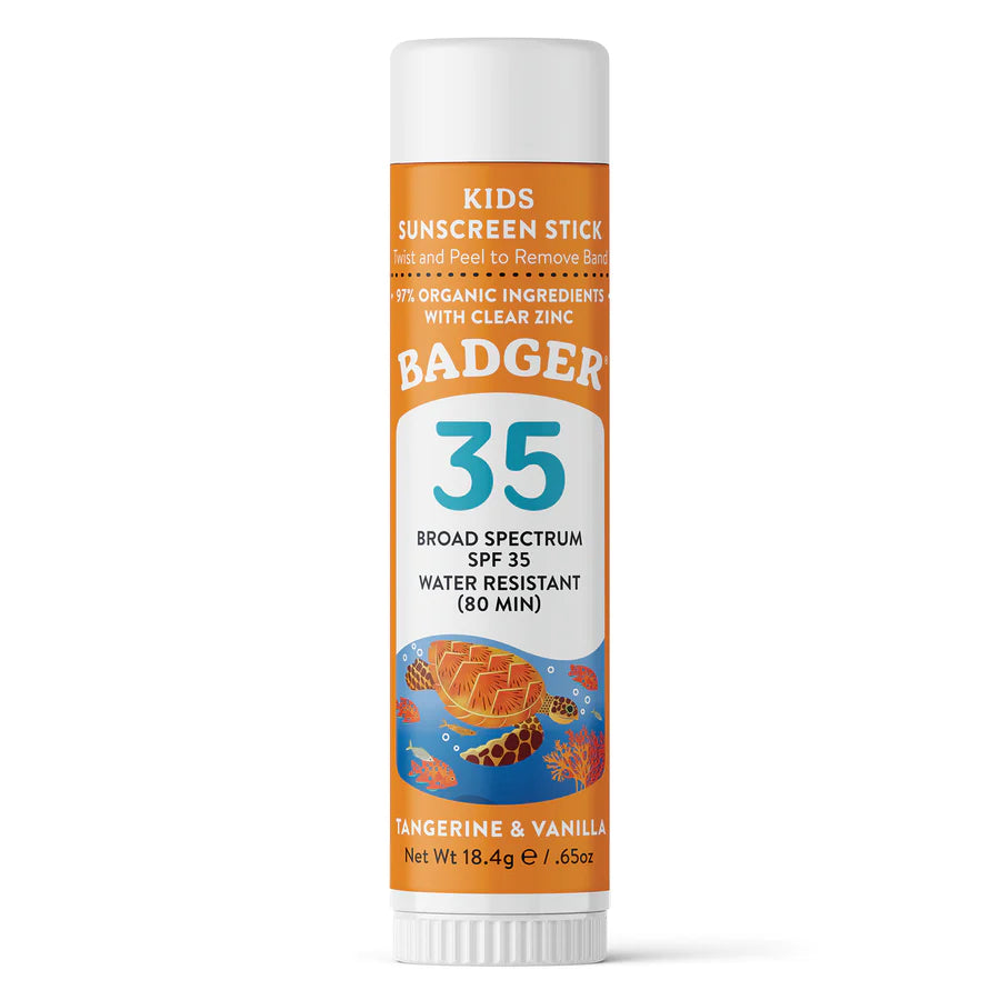 Easy sun protection in a mess-free face stick. Protect kids on the move with this natural zinc oxide face stick, ready to keep up with long days of summer camp and beach swimming. With just 9 simple ingredients, this pocket-sized stick glides right over nose, cheeks, lips and ears—with organic tangerine and vanilla for a summery, kid-approved scent.