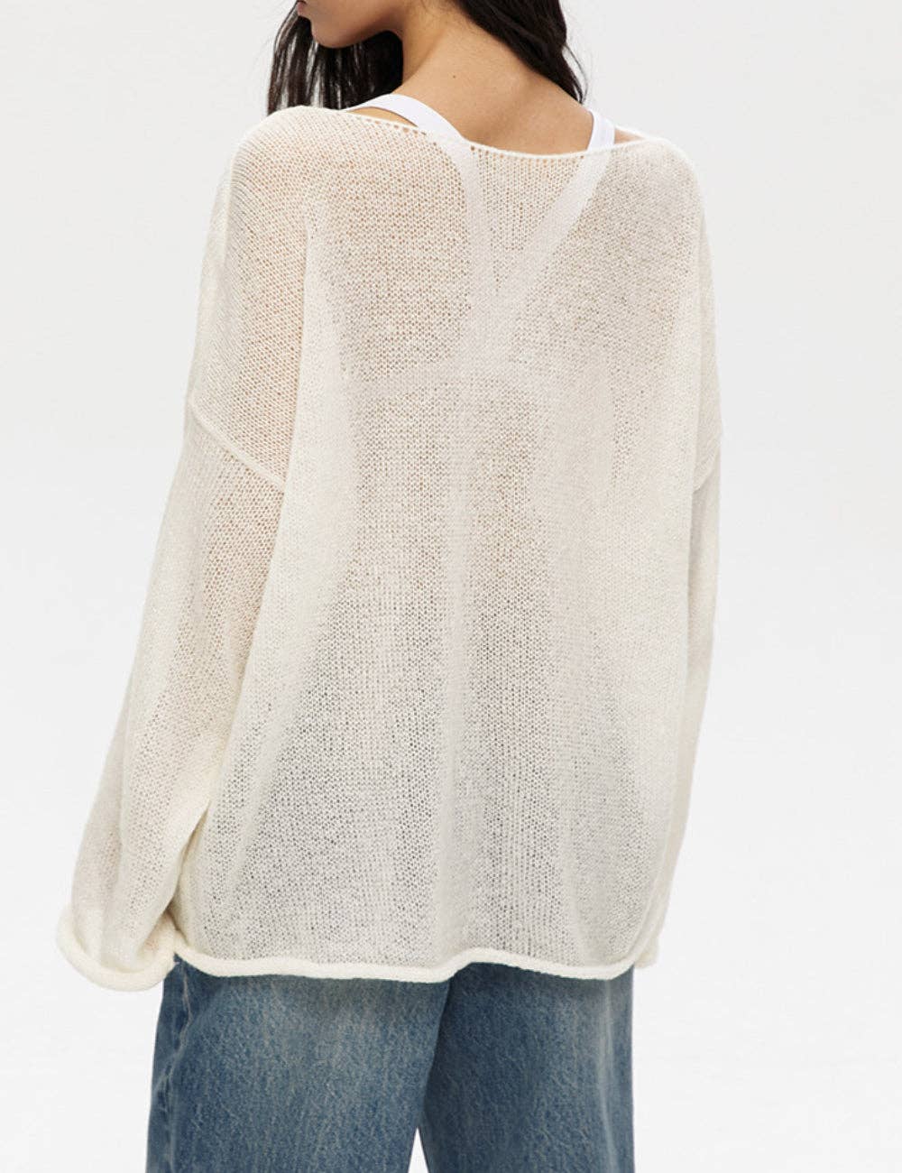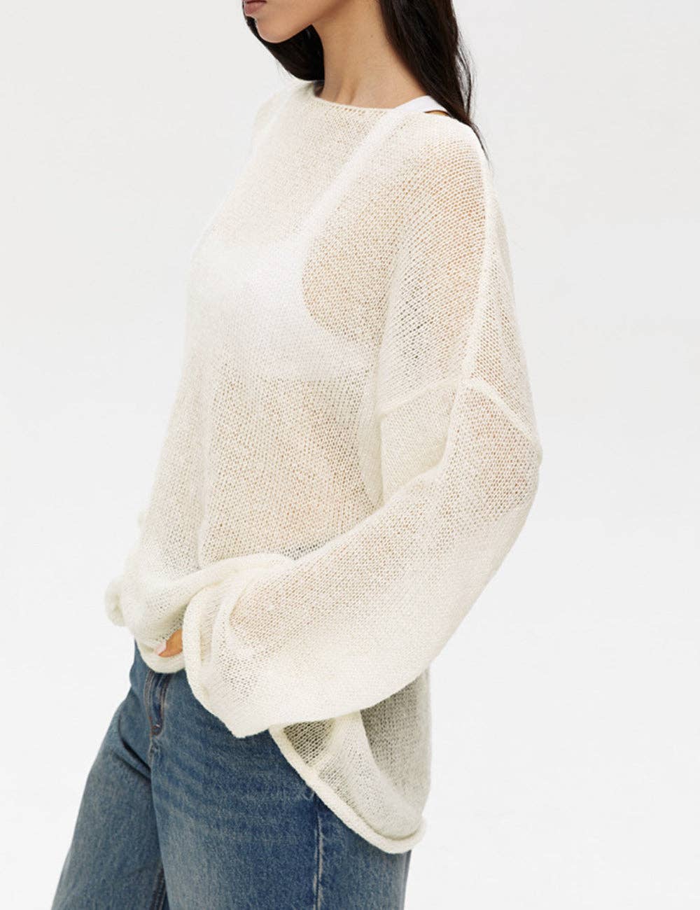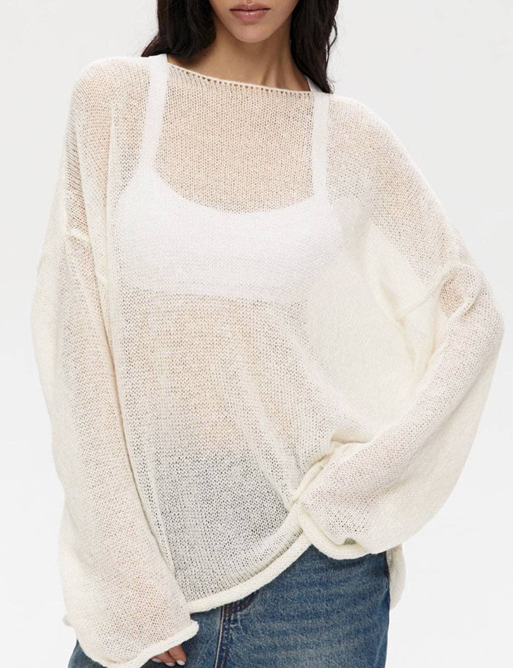 Features: * Ladies Knit Top * Polyester * Fabric with Stretch * Solid Color * Wide Crew Neck * Bell Long Sleeves * See Through * Drop Shoulders * Casual Fitting * Ladies Knit Top Model Fitting: * Model wearing size S * Model Size: Height - 5'7" Bust - 33" Hips - 34.6" Waist- 24.4"