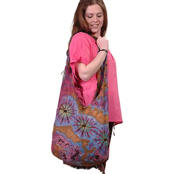 Get ready to make a colorful statement with the Large Tye Dye Cotton Peddler Bag!