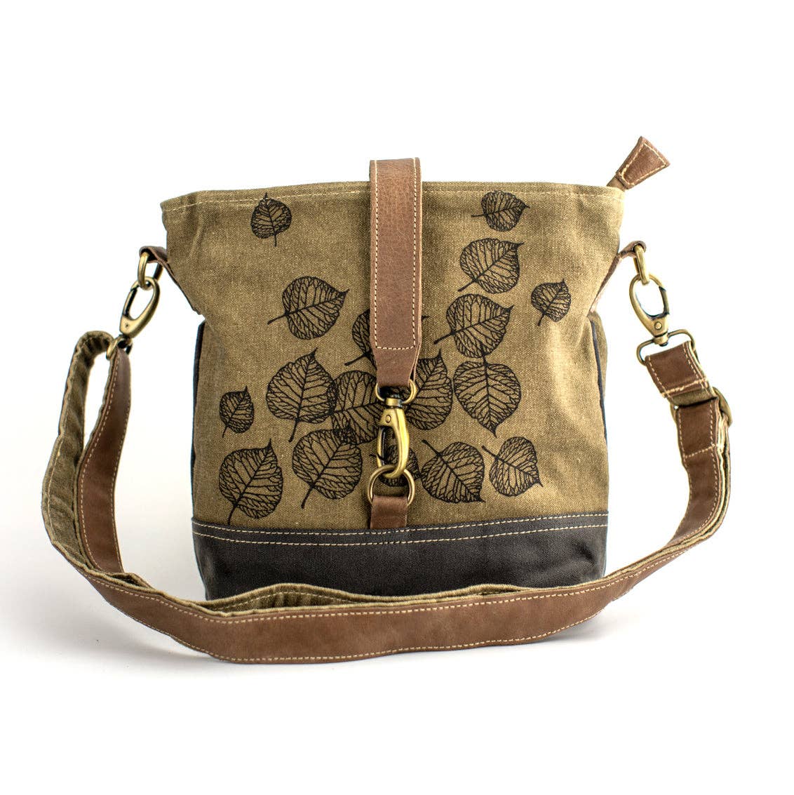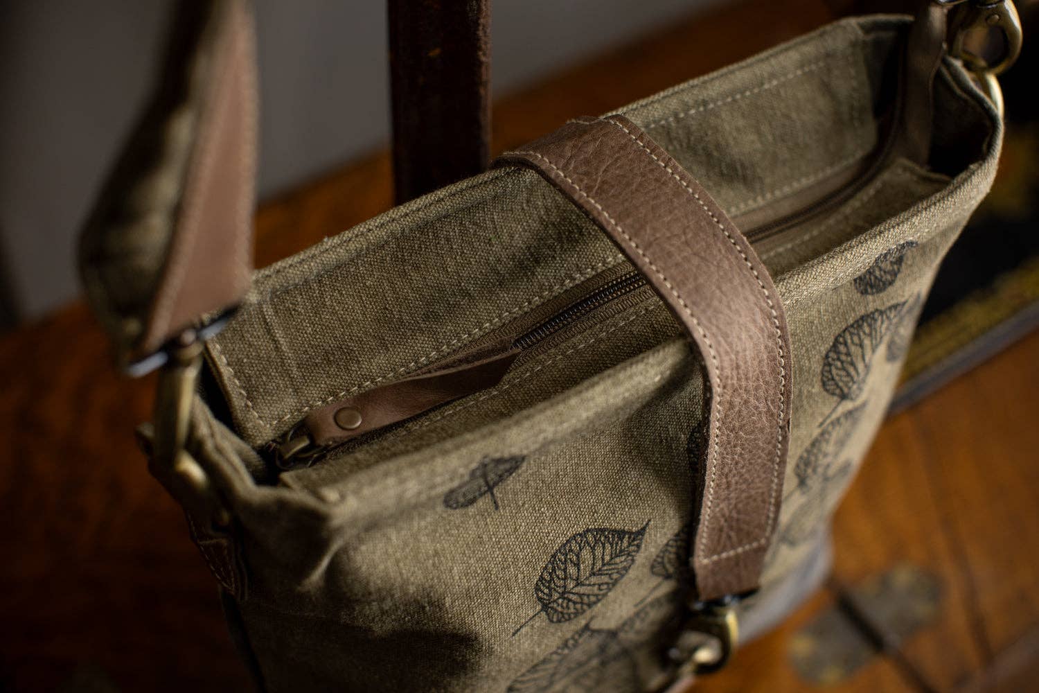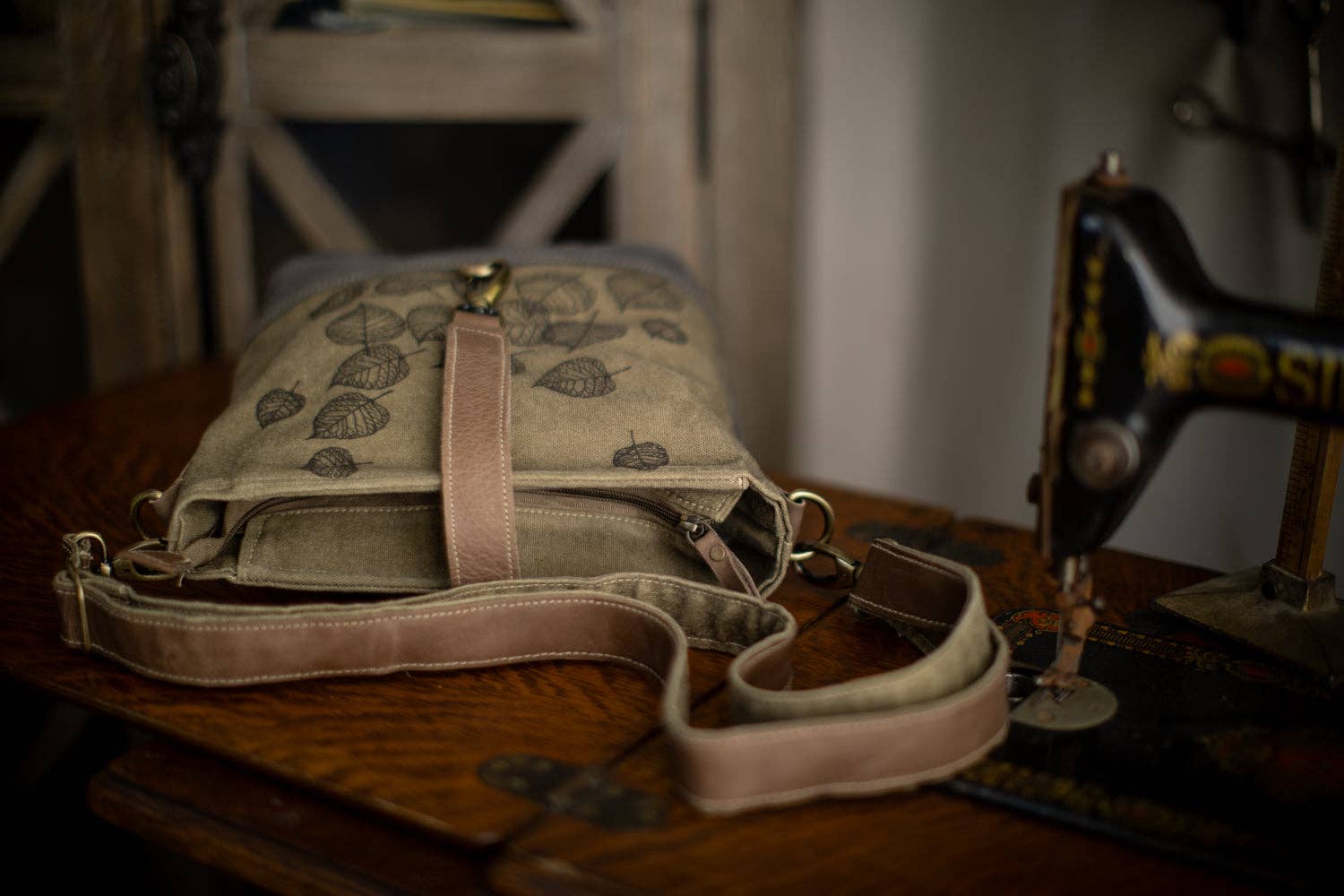 The Leaves Recycled Medium Canvas Sling is a versatile, stylish, and eco-conscious accessory, perfect for daily use. Made from durable recycled canvas, trimmed with genuine leather and brass hardware, this sling bag combines sustainability with functional design.