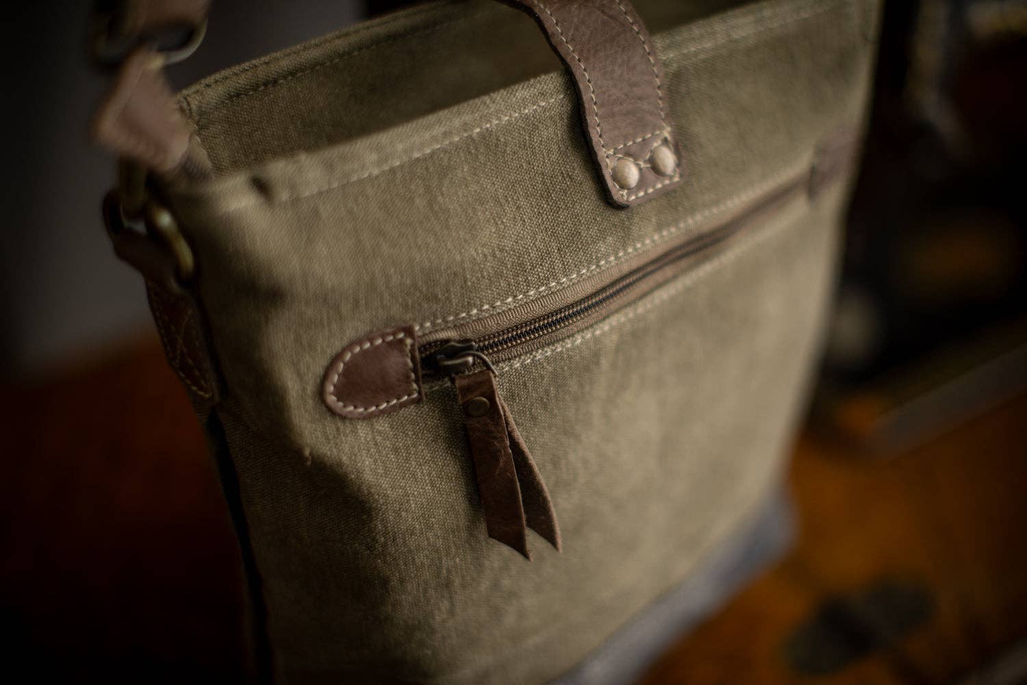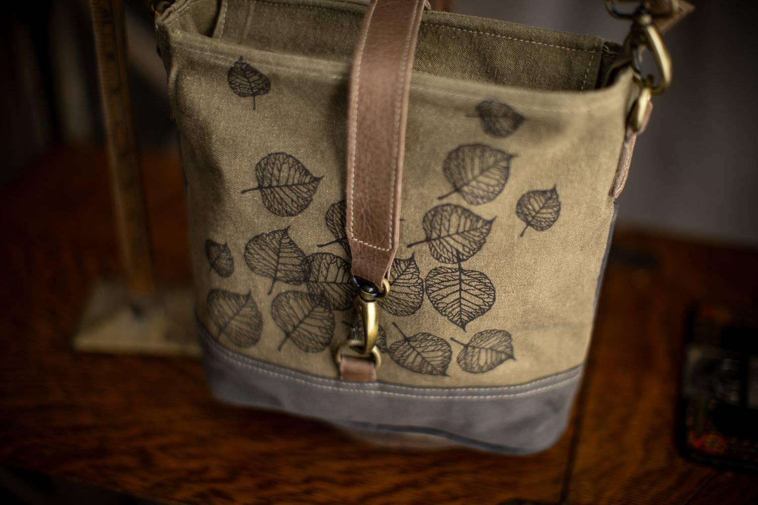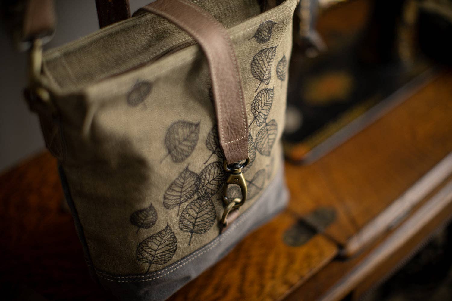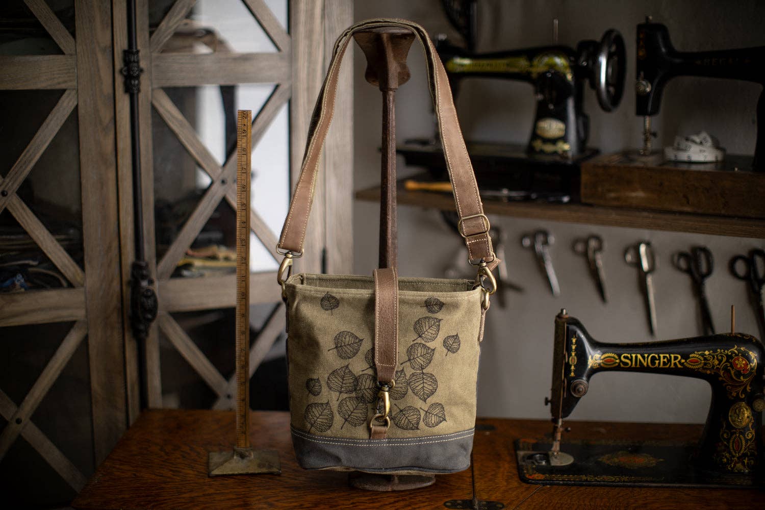 The Leaves Recycled Medium Canvas Sling is a versatile, stylish, and eco-conscious accessory, perfect for daily use. Made from durable recycled canvas, trimmed with genuine leather and brass hardware, this sling bag combines sustainability with functional design.