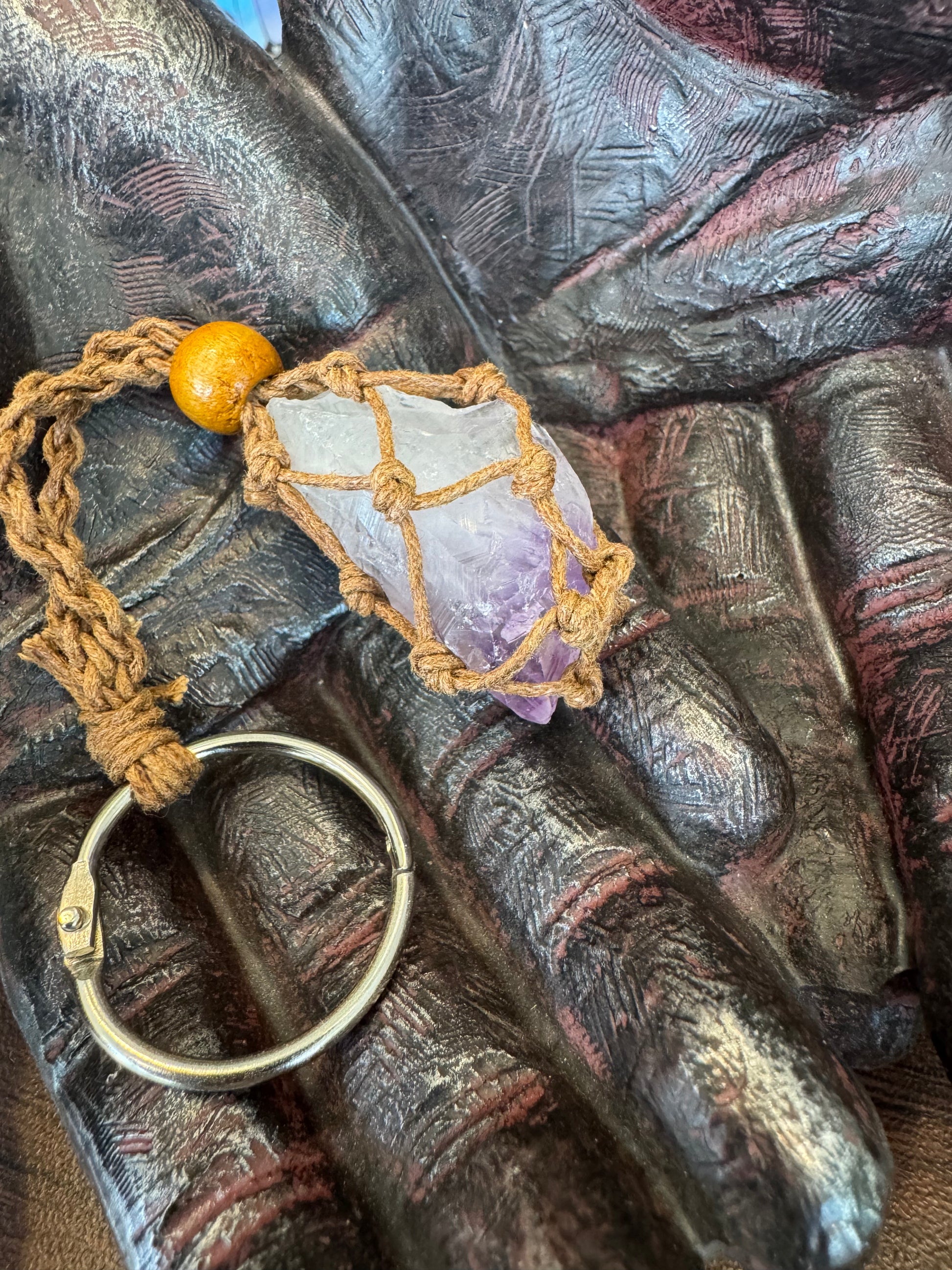 Macrame Stone Pouch Keychain