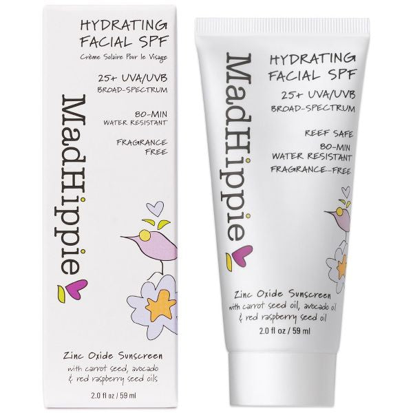 Hydrating Facial SPF 25 2 oz CreamNew Improved formula!!!Protect & nourish your skin with hydrating hyaluronic & polyglutamic acids, while natural antioxidant-rich oils work alongside vitamin C + ferulic acid to fend off aging UV rays!A clear, clean mineral SPF 25+ loaded with actives to keep your skin protected, hydrated, and healthy! Our lotion blends in beautifully, and is perfect for daily use around town, a jog, or a trip to the beach!All of our sunscreen products utilize nano-free zinc oxide rather than chemical UV absorbers, which can wreak havoc on the fragile environments of lakes, rivers and oceans! They are 80-minute water resistant, reef-safe, cruelty-free, vegan, and completely free of fragrance, petrochemicals, synthetic dyes, silicones, parabens & phthalatesActive IngredientsZinc Oxide (non-nano): 15.7