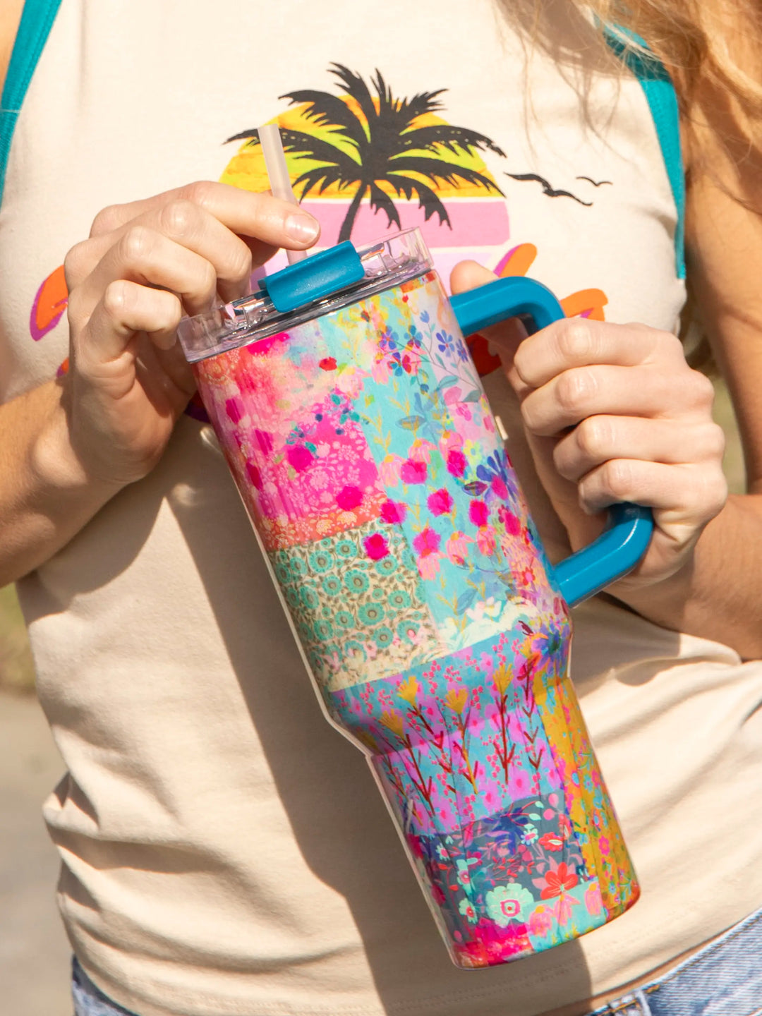 A mega tumbler to keep you hydrated all day long! Use it for hot or cold drinks!