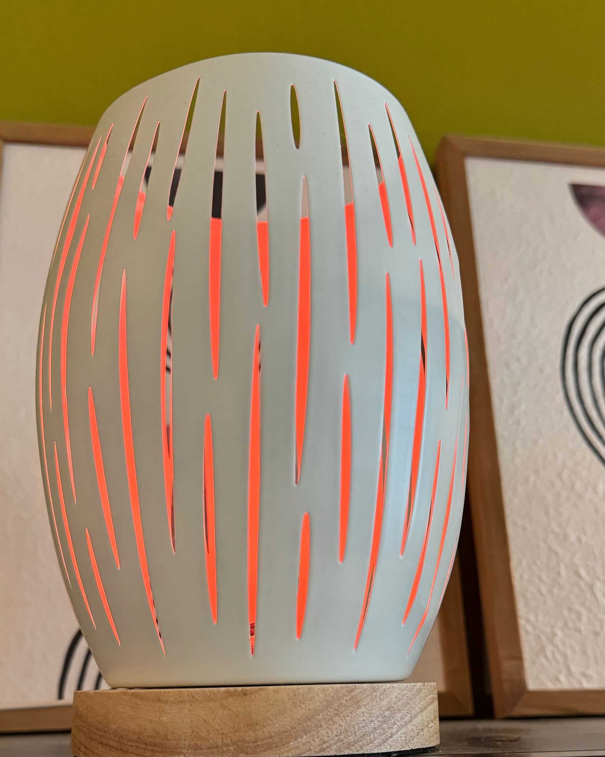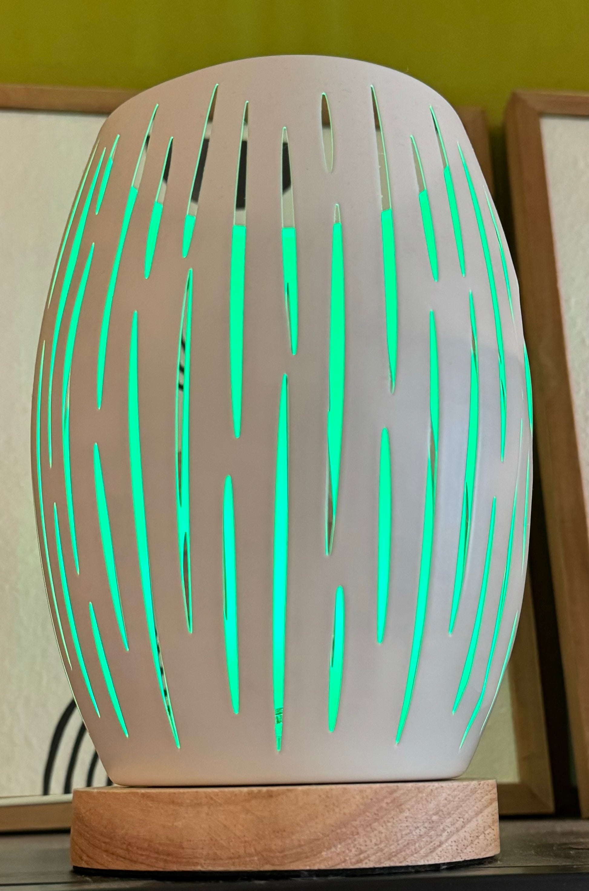 This beautiful accent lamp slowly cycles from white, red, blue to green.