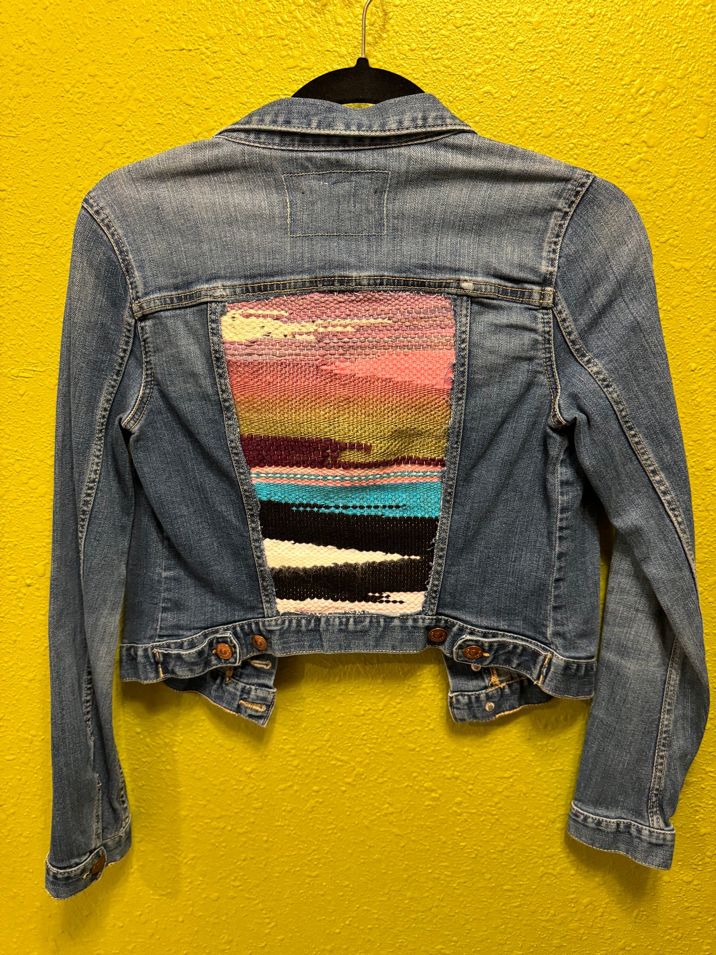 Lauren's handwoven work is unified through a mission to create special one-of-a-kind wearable items in a zero waste studio. Her items are created with remnants and locally sourced fibers such as wool from regional farms. During SAORI, the weaver treats the loom like a canvas to paint on. Favorite items include shawls, upcylced denim jackets, and handwoven tops. After weaving, Lauren uses every part of the cloth to create various items. This process brings a large variety of sizes and price points to the handwoven line. Lauren's signature approach is inspired by the play of negative versus positive space, landscape, cityscapes, musical patterns, and color studies.